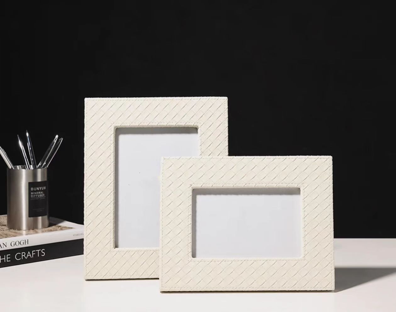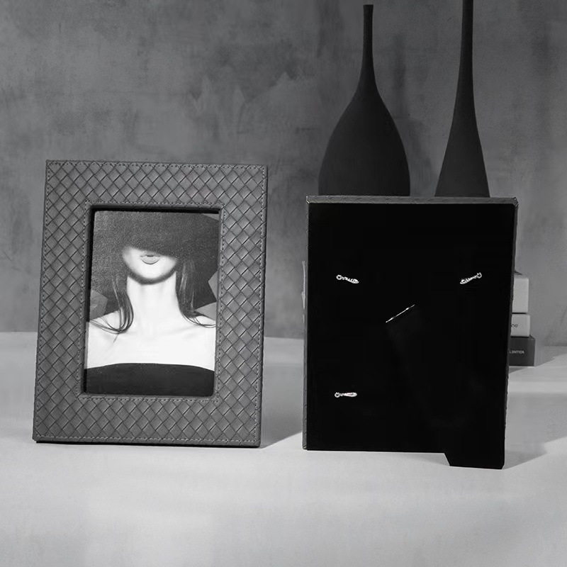 간단한 현대 고급 짠 가죽 사진 프레임 테이블 모델 룸 침실 침대 옆 테이블 거실 사이드 테이블 창조적 인 장식품