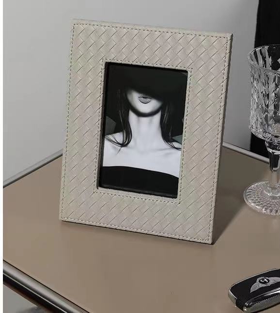 간단한 현대 고급 짠 가죽 사진 프레임 테이블 모델 룸 침실 침대 옆 테이블 거실 사이드 테이블 창조적 인 장식품스토어 가기