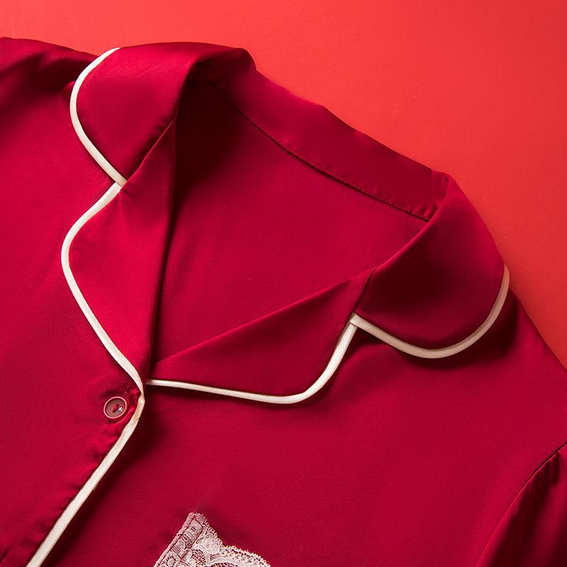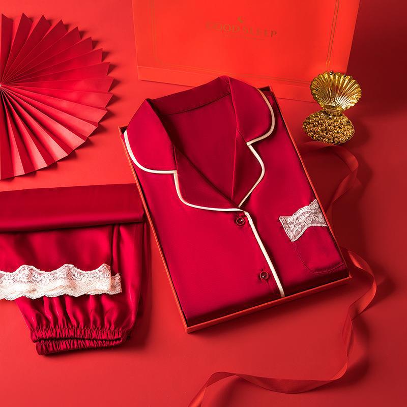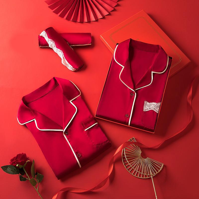결혼식 신혼 부부 잠옷 가을과 겨울 아이스 실크 여성의 하이 엔드 센스 레드 라이프 해 남자 실크 홈 옷