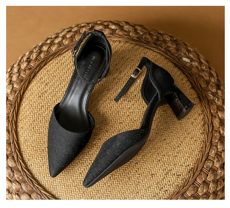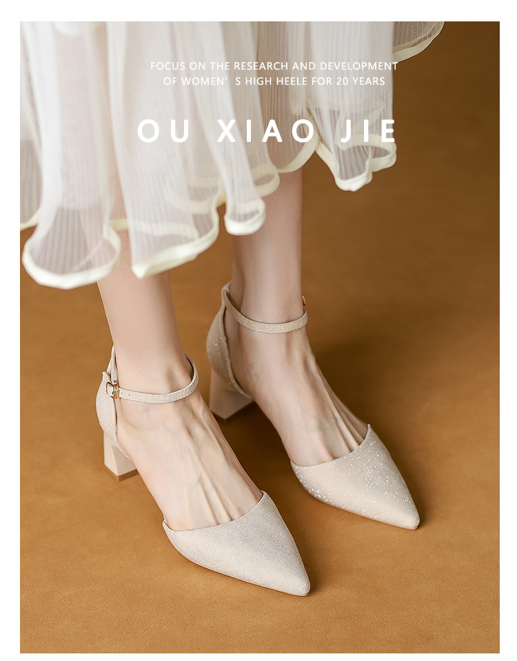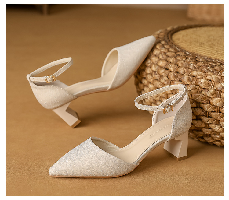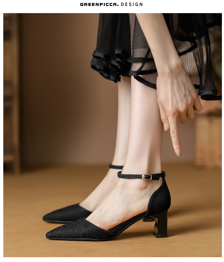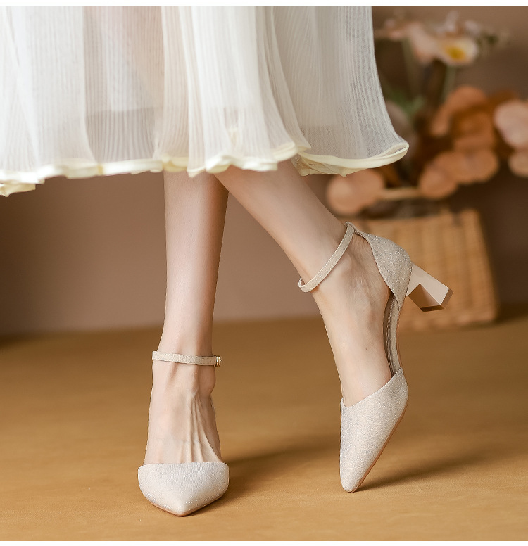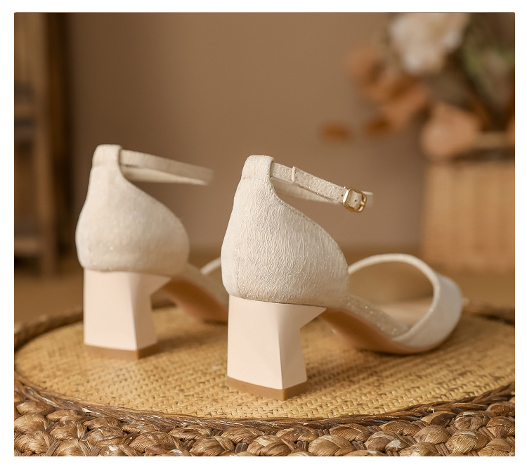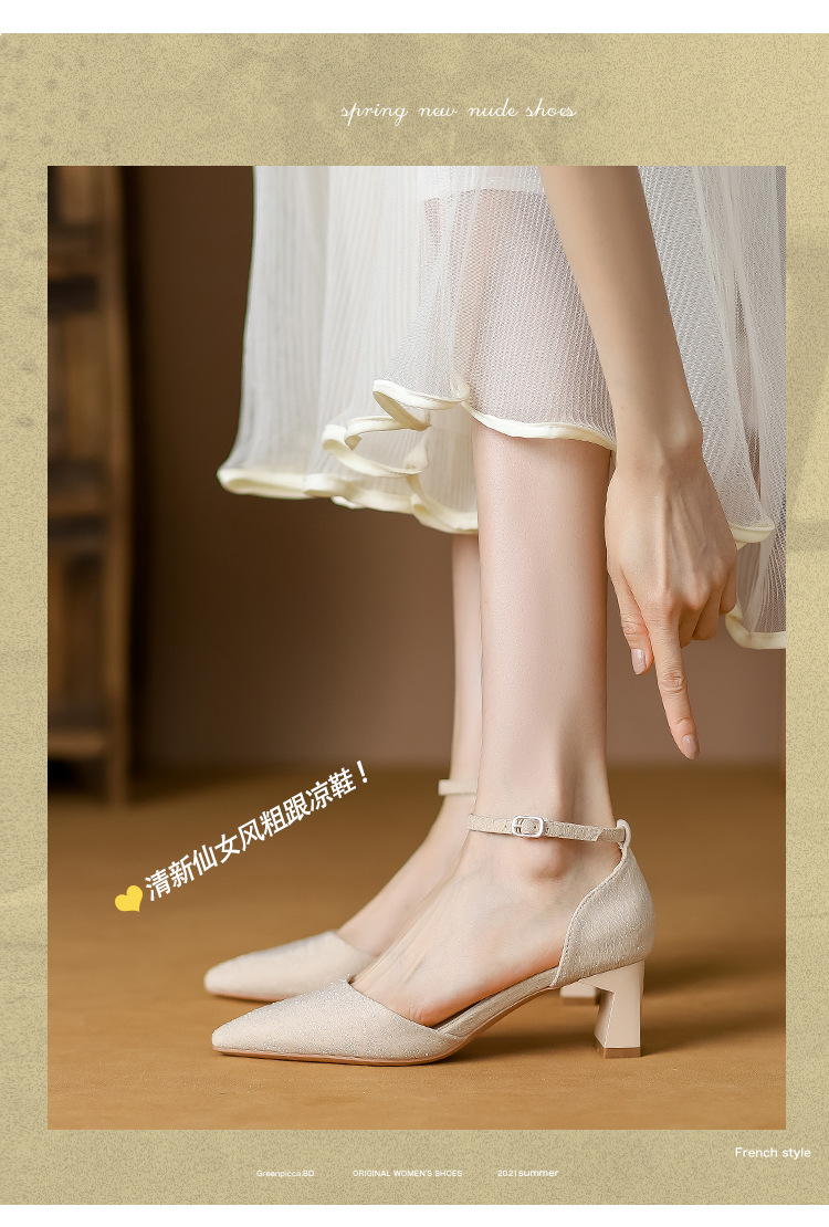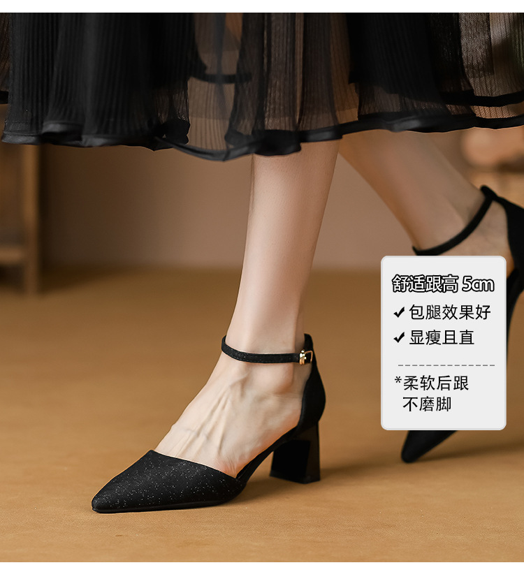 넓고 통통한 피트 크기 41-43 덮인 발가락 샌들 여성의 2023 년 여름 버클이 달린 새로운 넓고 뚱뚱한 하이힐