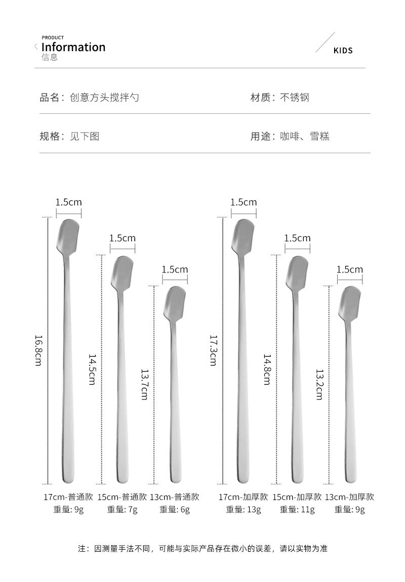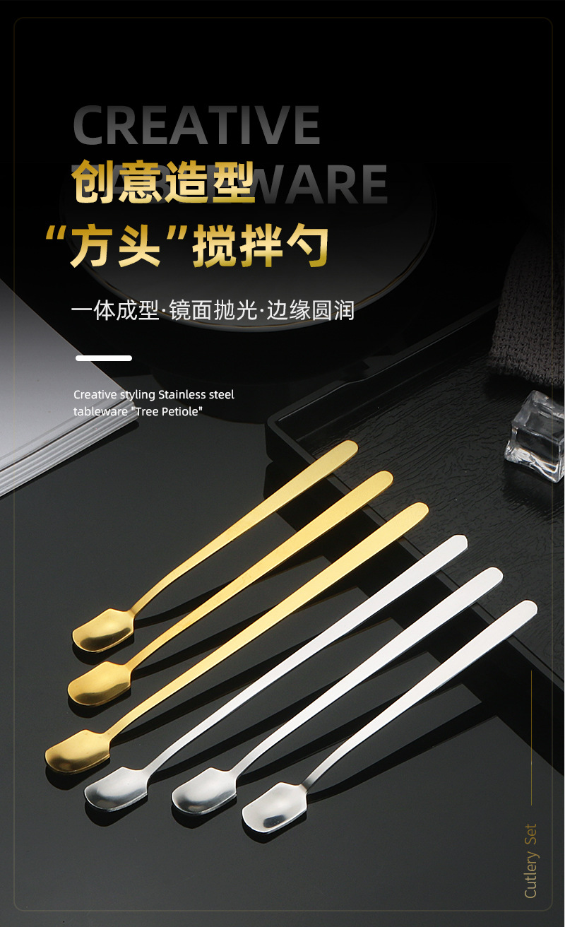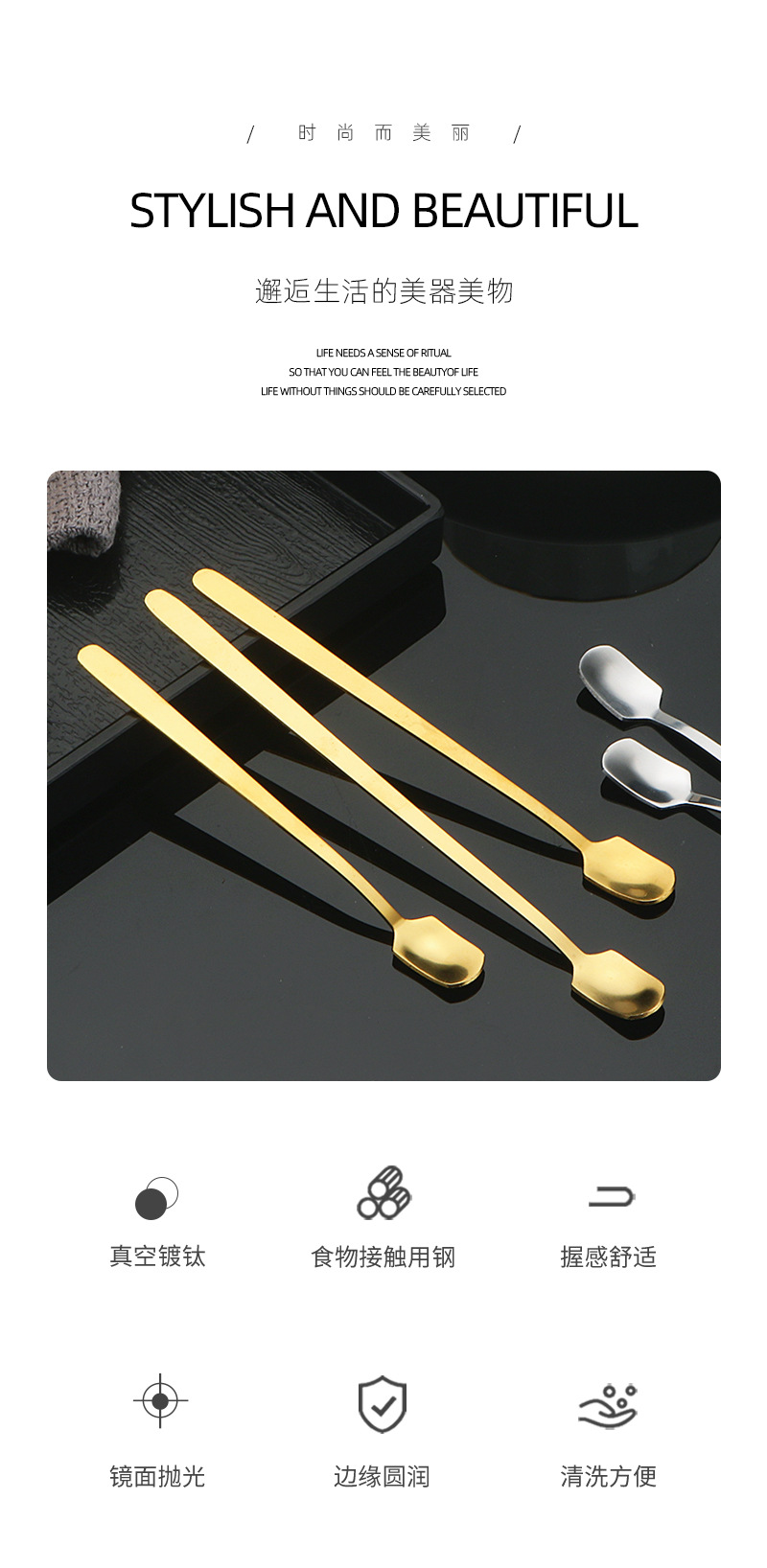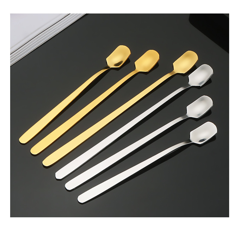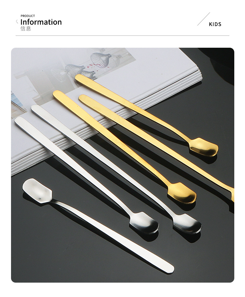 스테인레스 스틸 그물 레드 롱 핸들 스푼 스퀘어 헤드 스푼 믹싱 스푼 조미료 스푼 커피 디저트 스푼 머그 작은 스푼