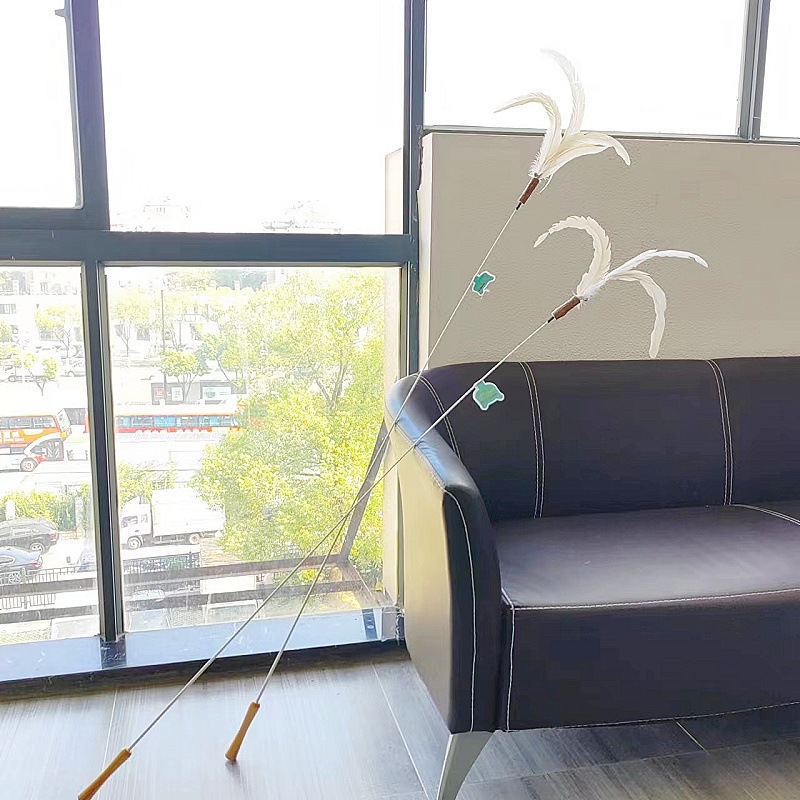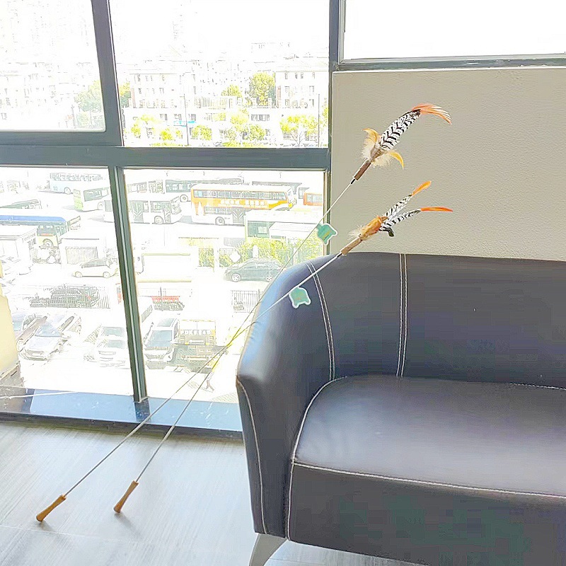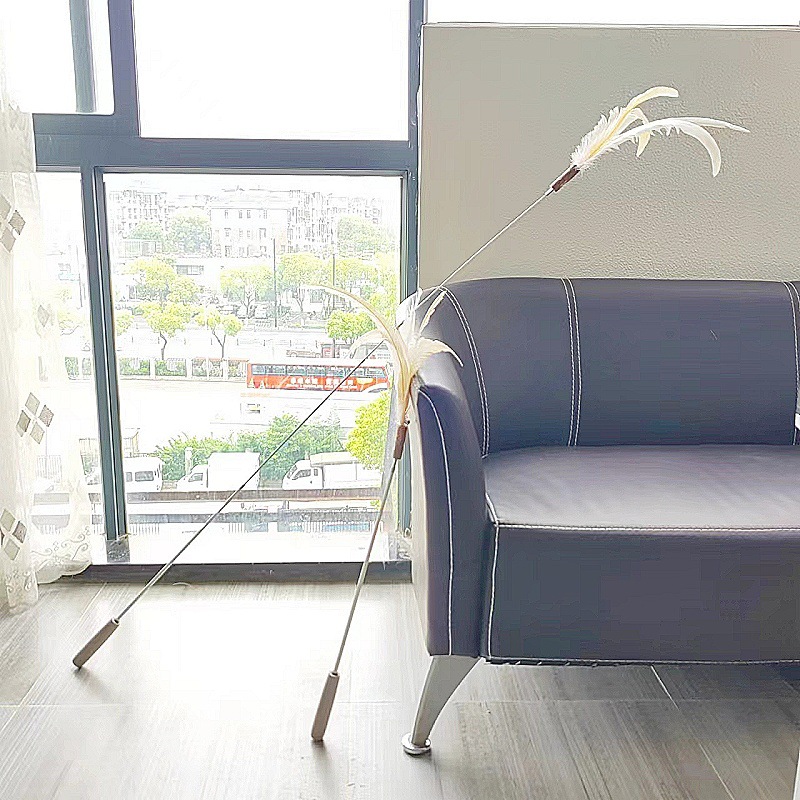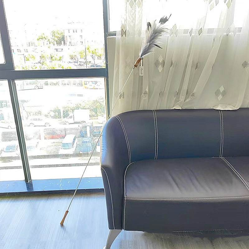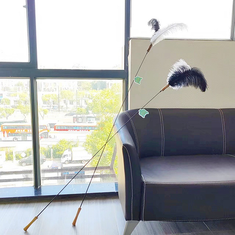 고양이 장난감 슈퍼 롱로드 산 닭 깃털/타조 깃털 고양이 스틱 벨 고양이 장난감 애완 동물 용품 공장 도매스토어 가기