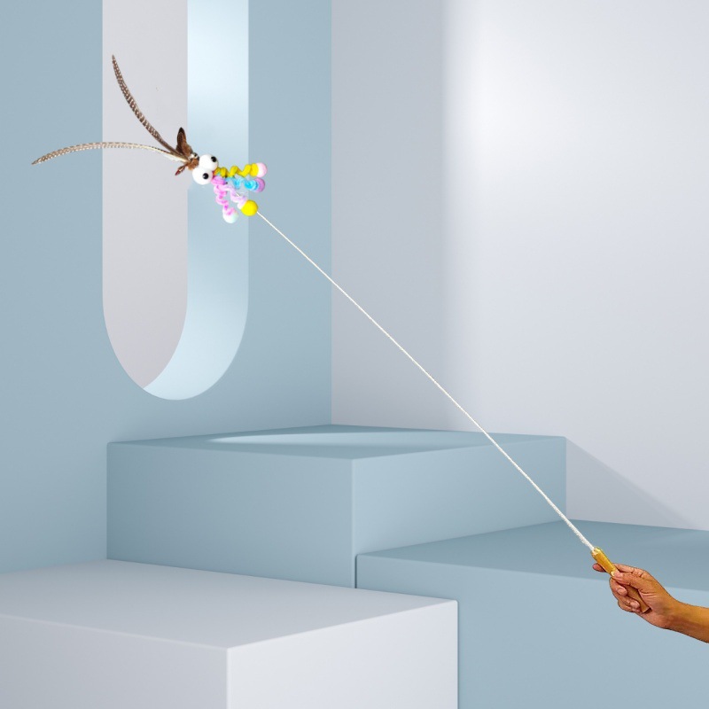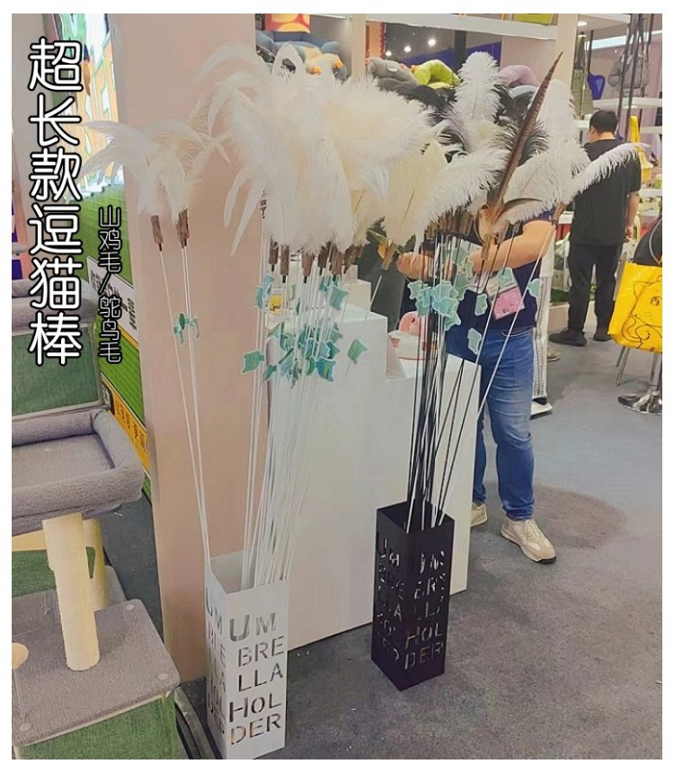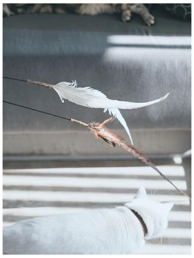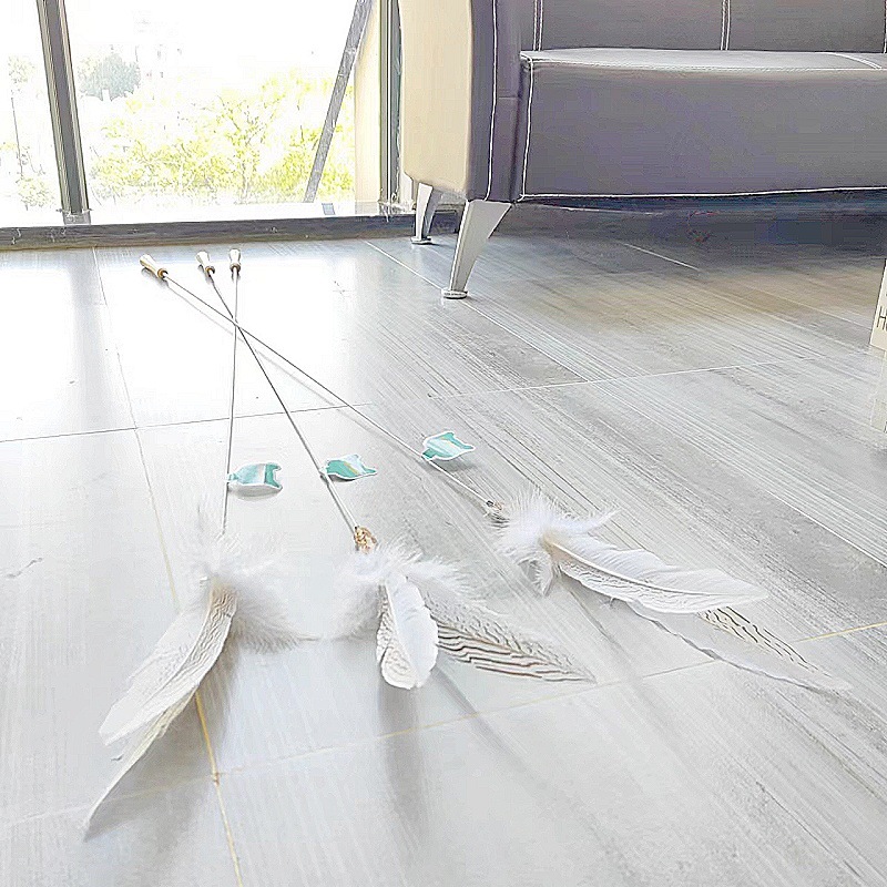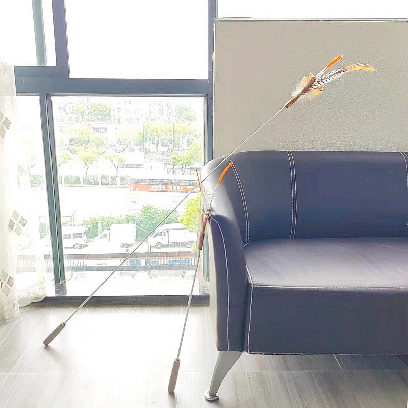 고양이 장난감 슈퍼 롱로드 산 닭 깃털/타조 깃털 고양이 스틱 벨 고양이 장난감 애완 동물 용품 공장 도매스토어 가기