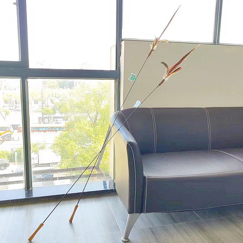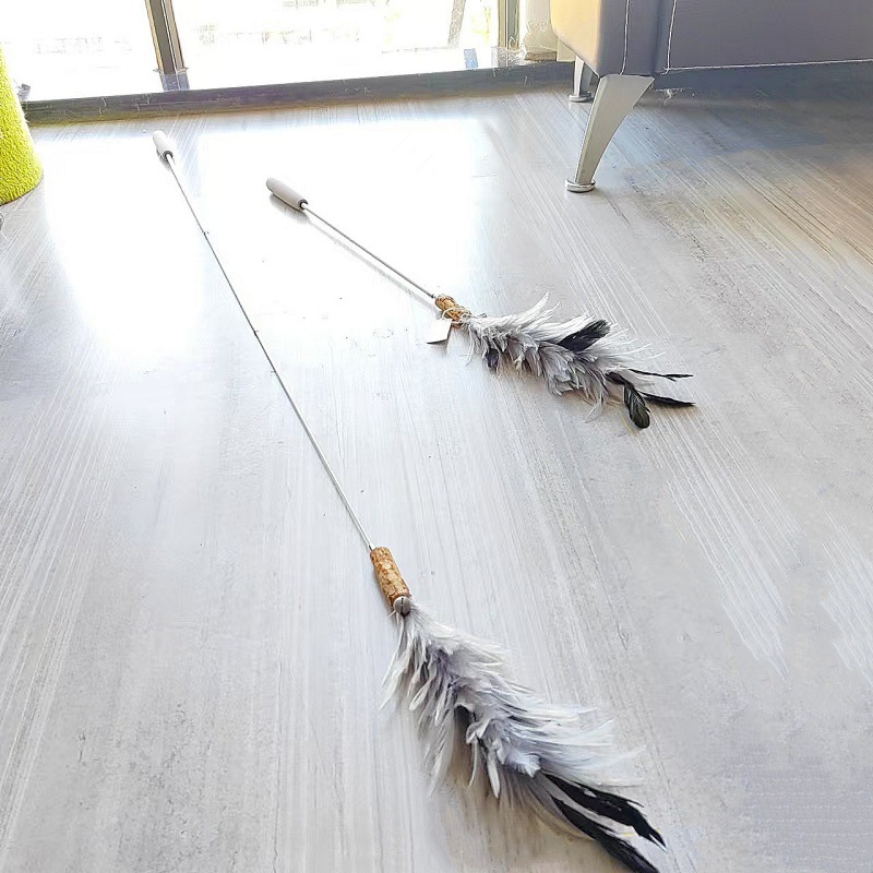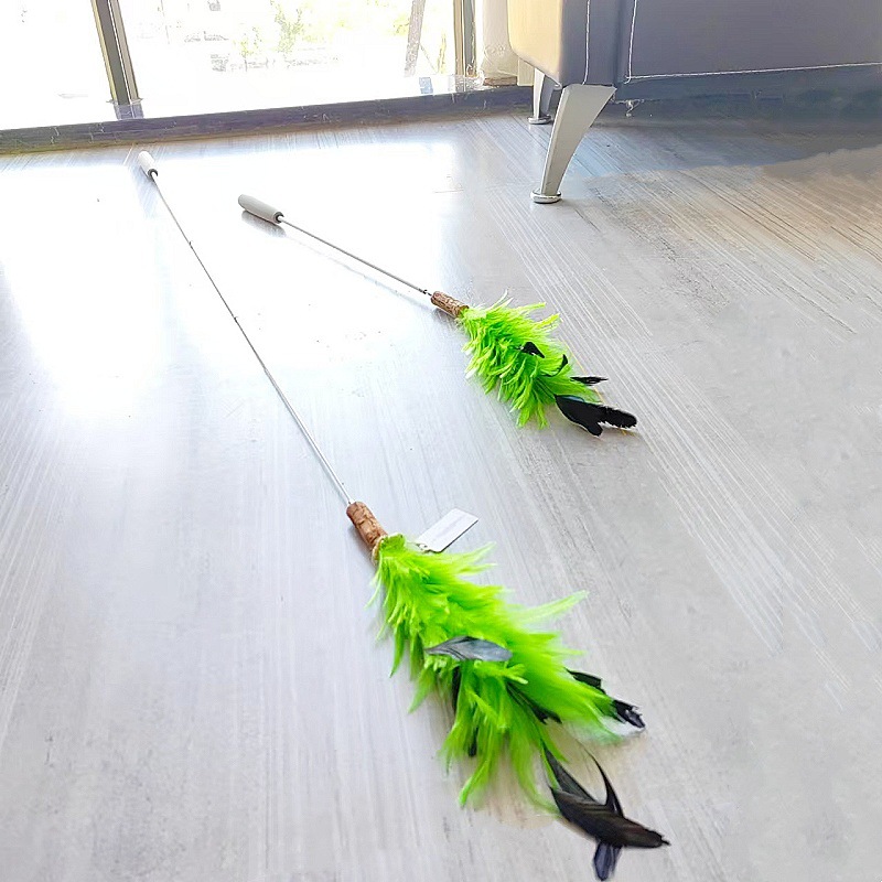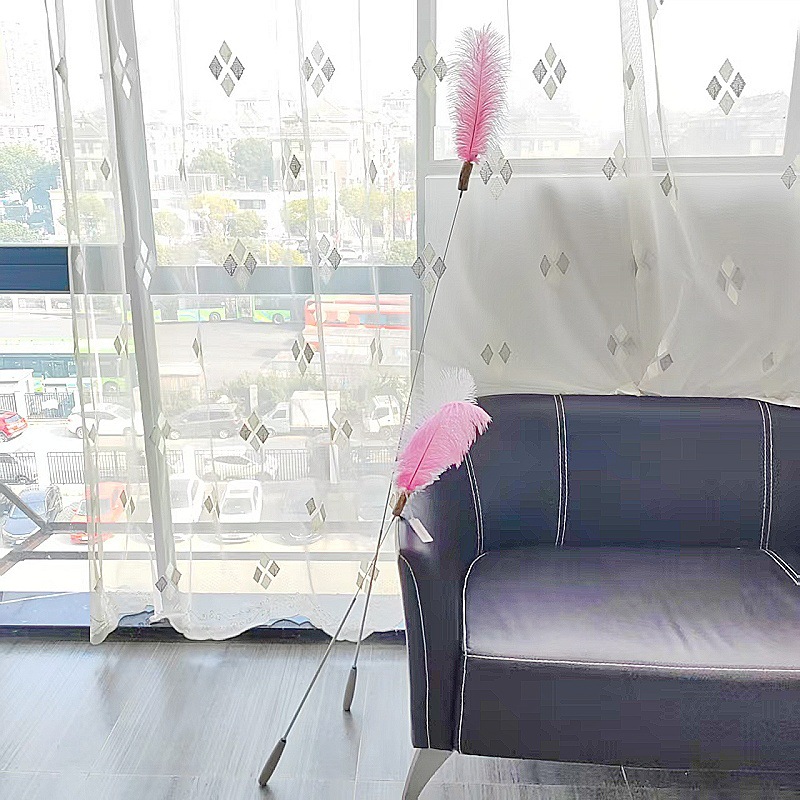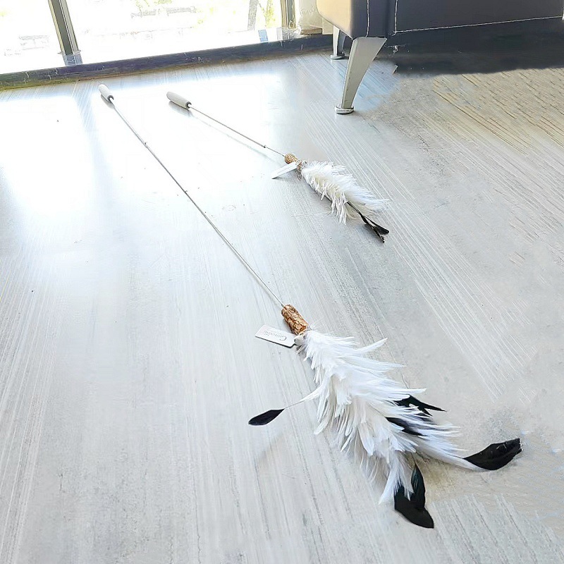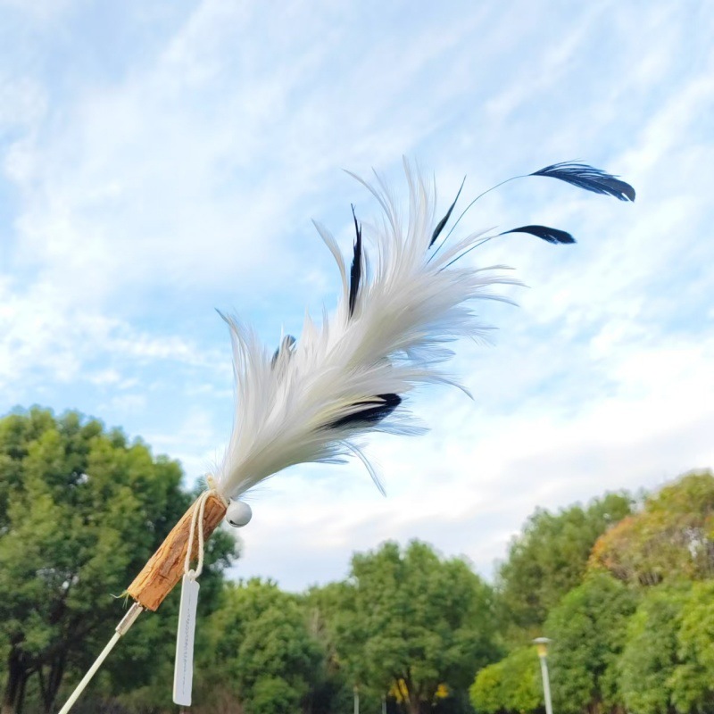 고양이 장난감 슈퍼 롱로드 산 닭 깃털/타조 깃털 고양이 스틱 벨 고양이 장난감 애완 동물 용품 공장 도매