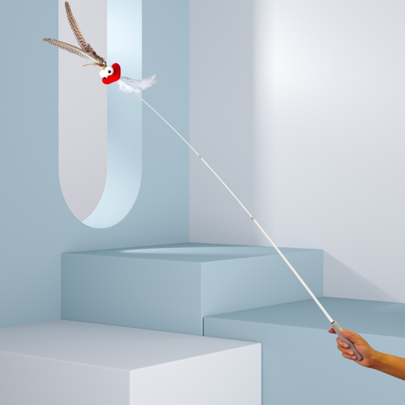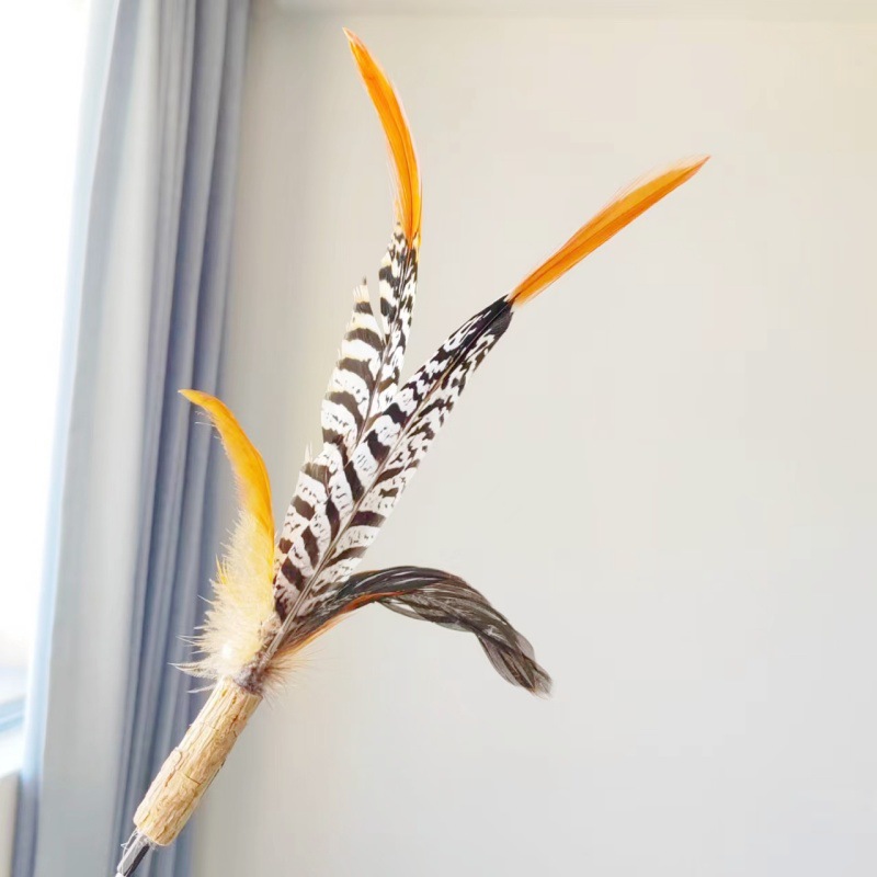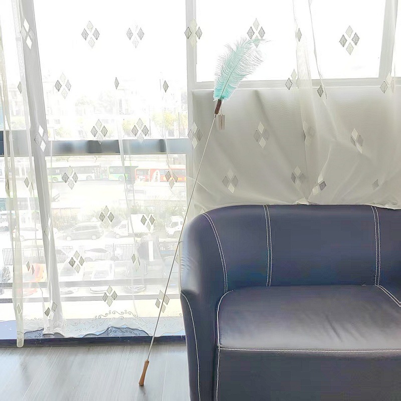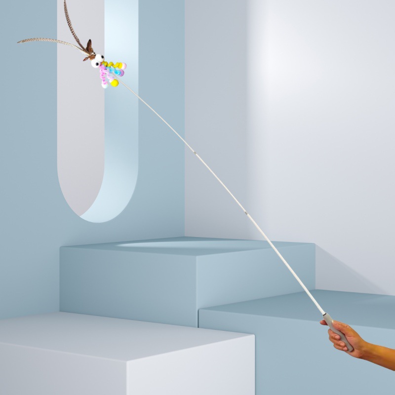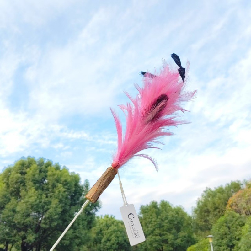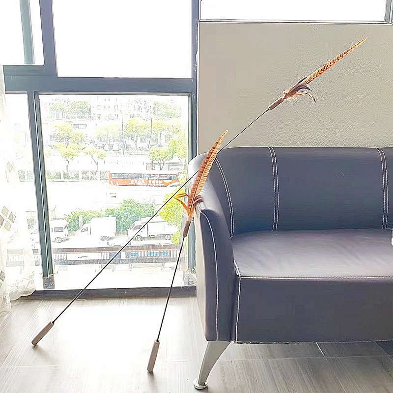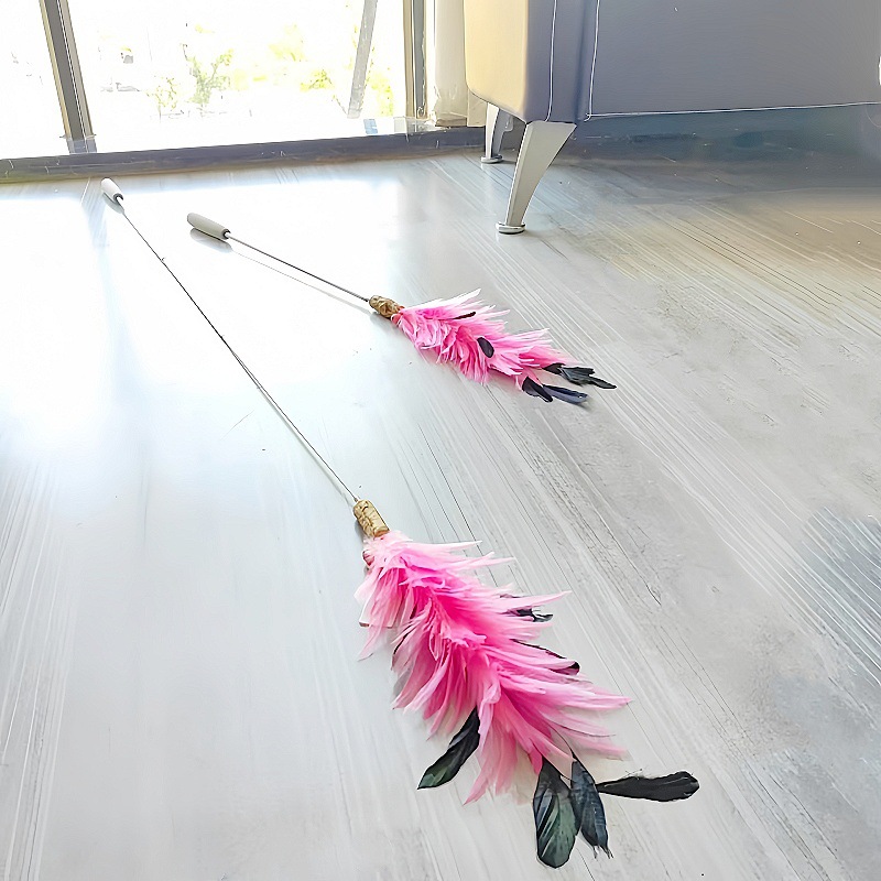 고양이 장난감 슈퍼 롱로드 산 닭 깃털/타조 깃털 고양이 스틱 벨 고양이 장난감 애완 동물 용품 공장 도매