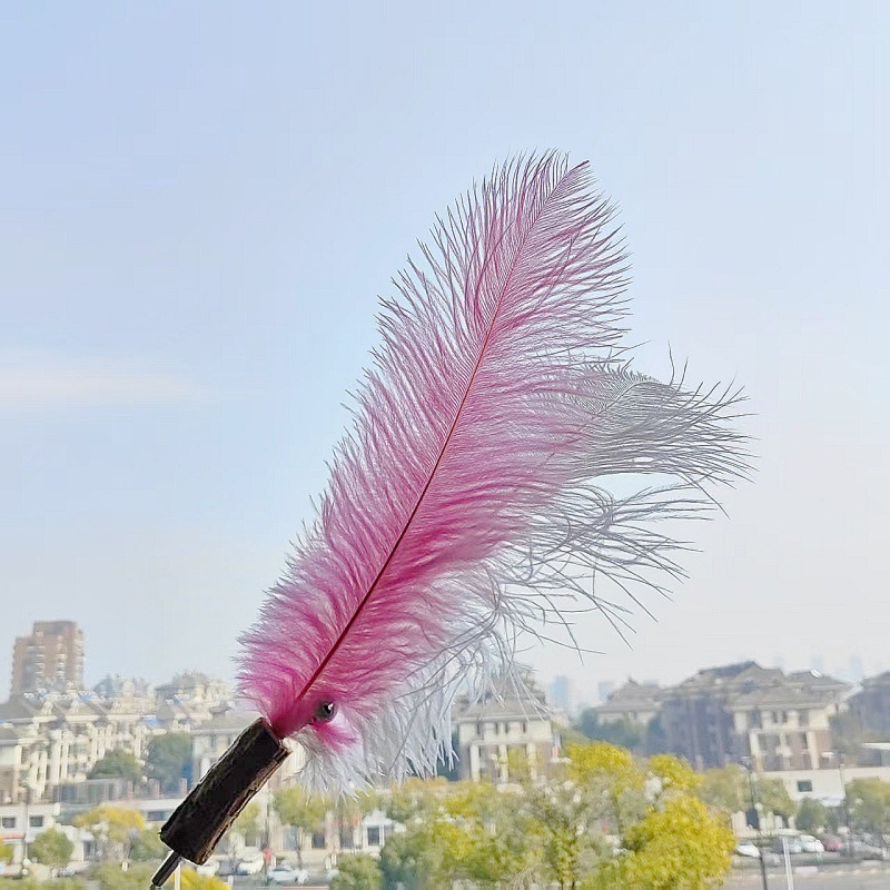 • 타조깃털 고양이 놀리는 스틱 핑크 + 화이트 (접이식 불가)