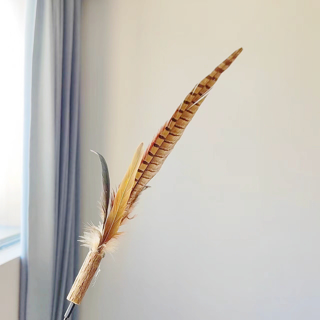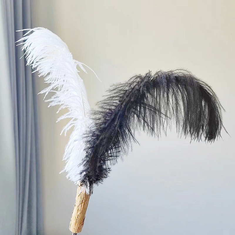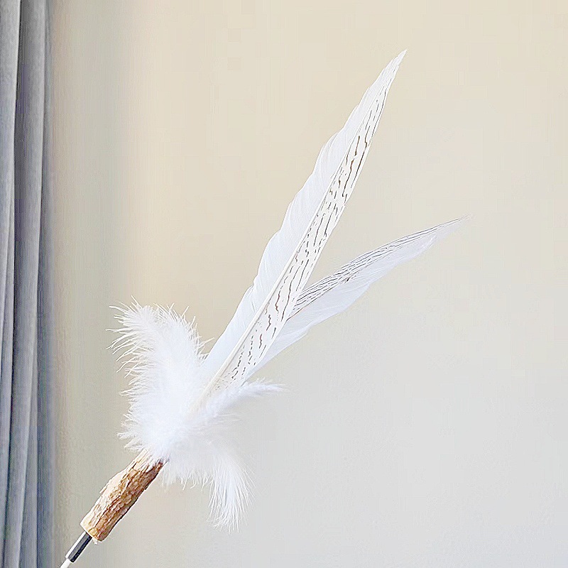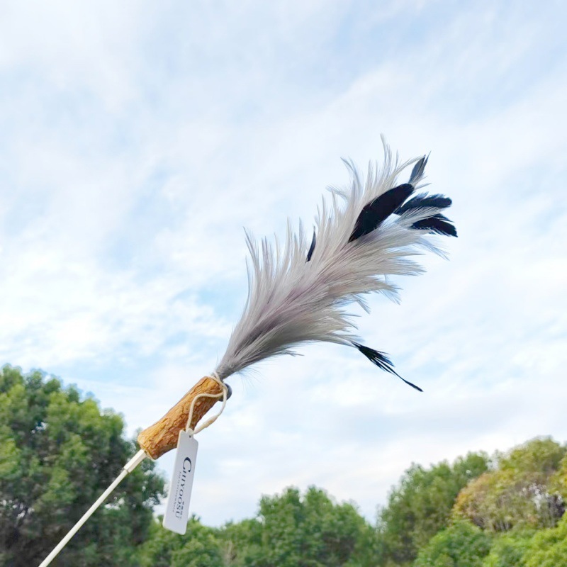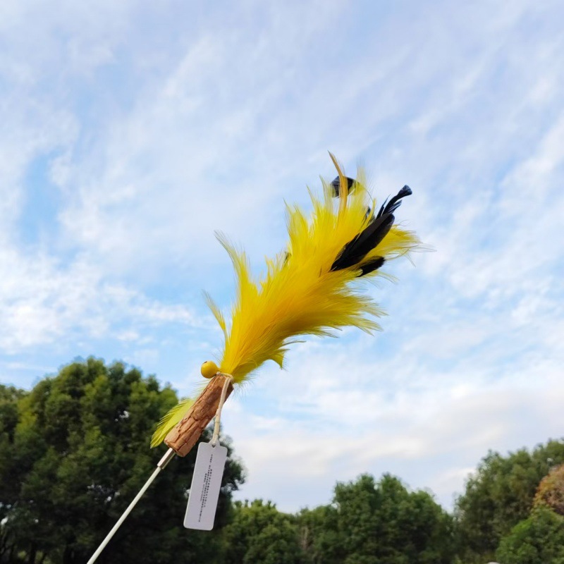 • 타조깃털 고양이 웃긴 막대기 노란색 + 흰색(접이식 불가)