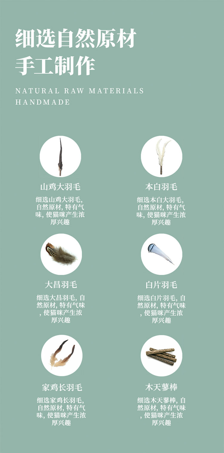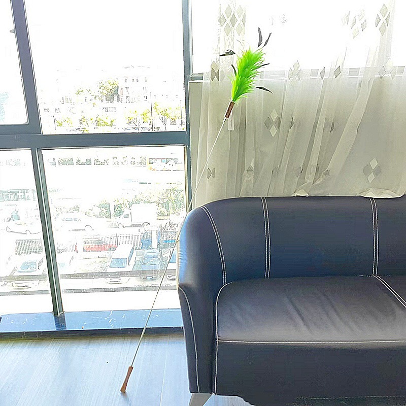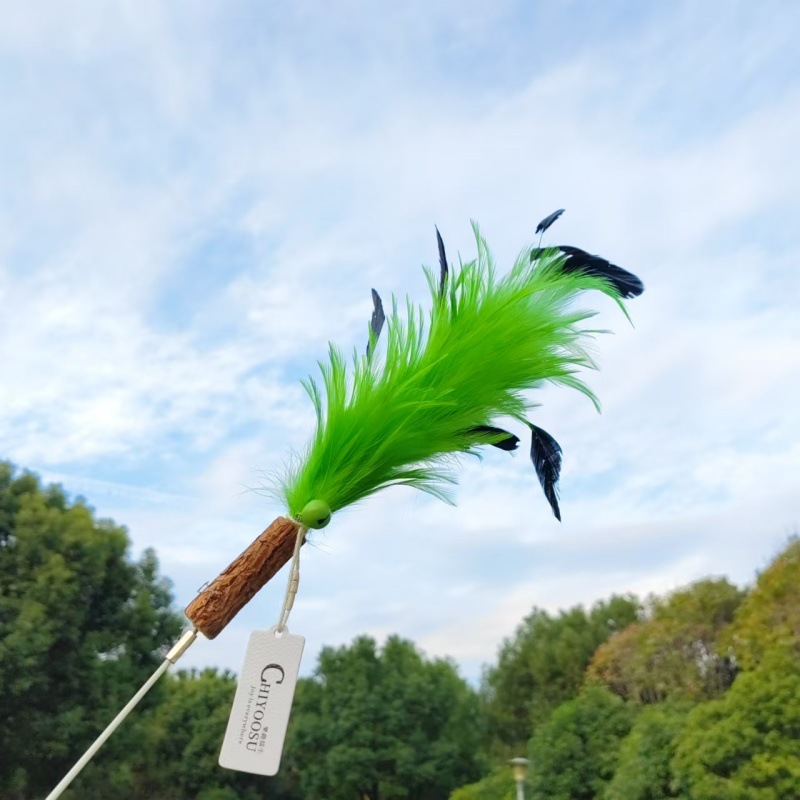 • 타조 깃털 고양이 놀리는 막대기 레이크 그린 + 화이트(접이식 불가)