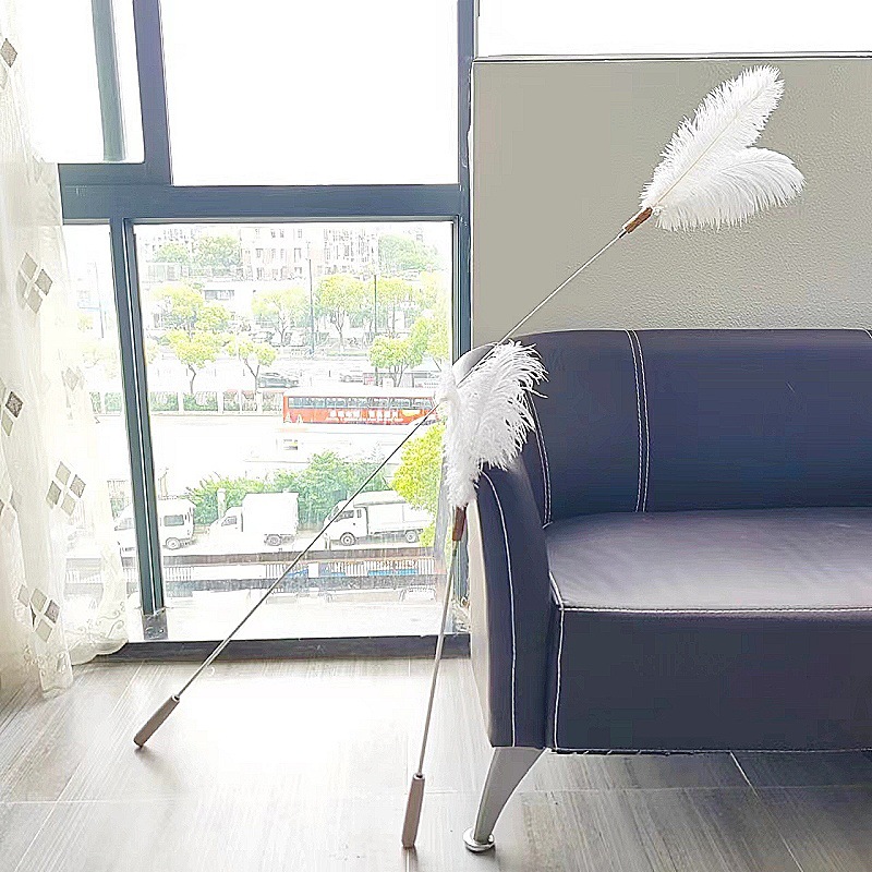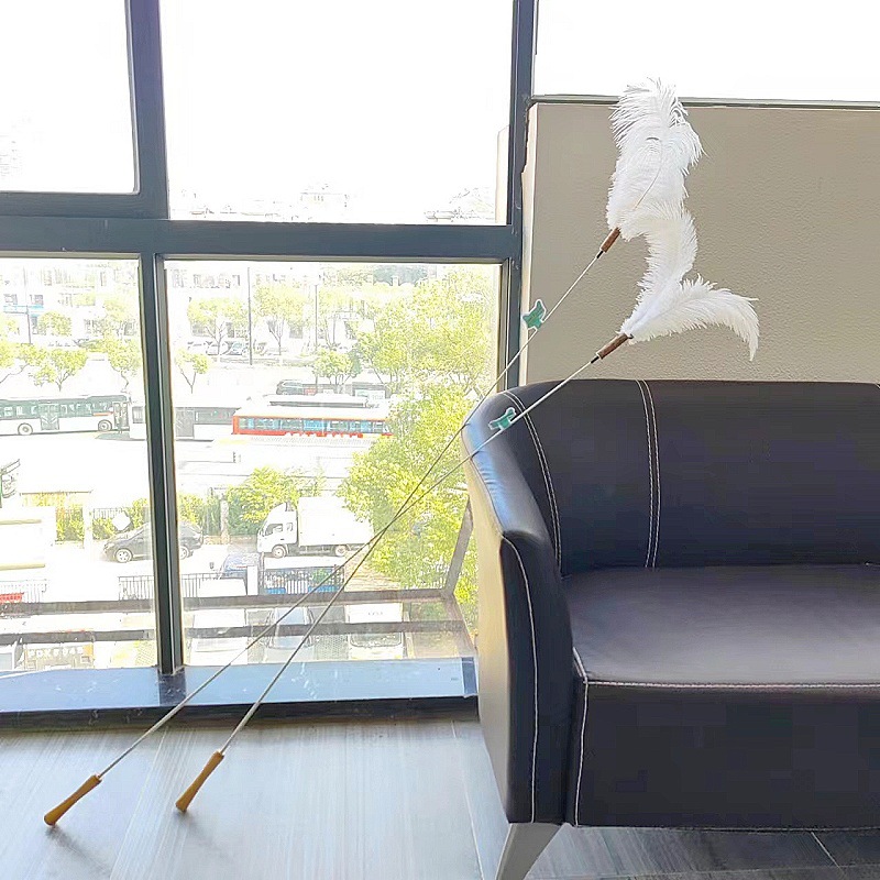• 긴 막대 닭 깃털 3 섹션 텔레스코픽 쌀 화이트