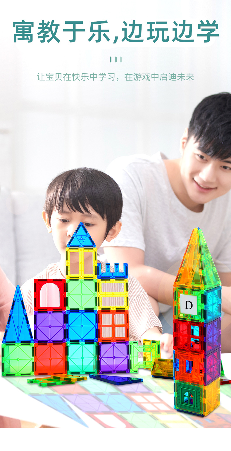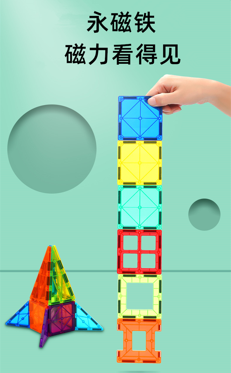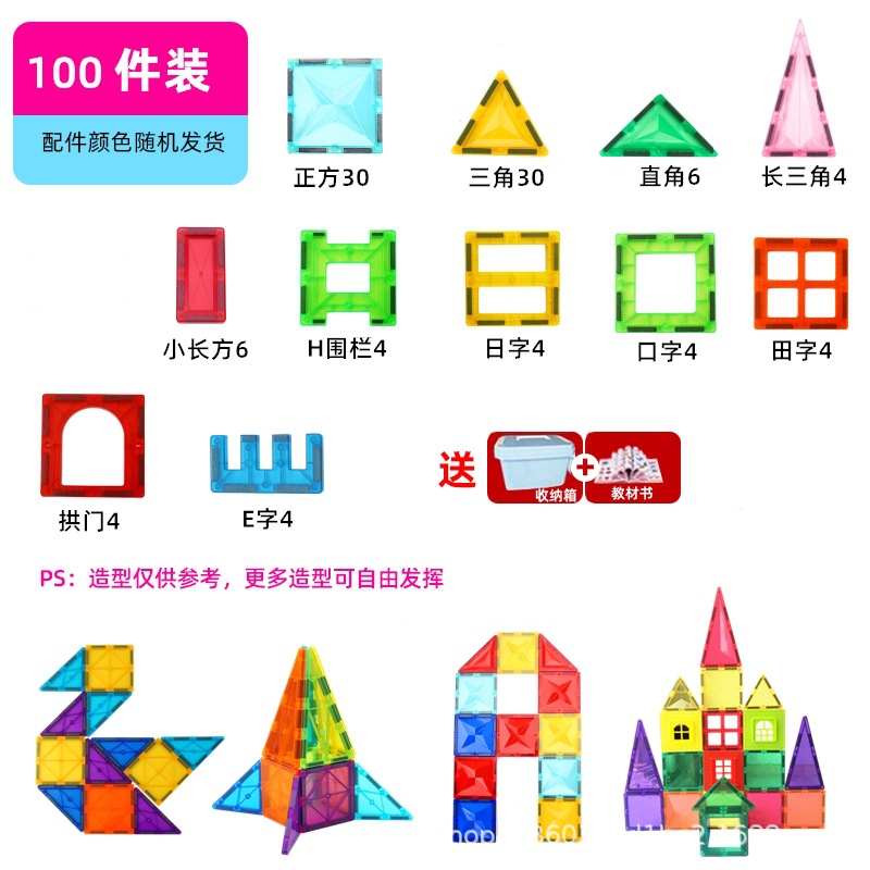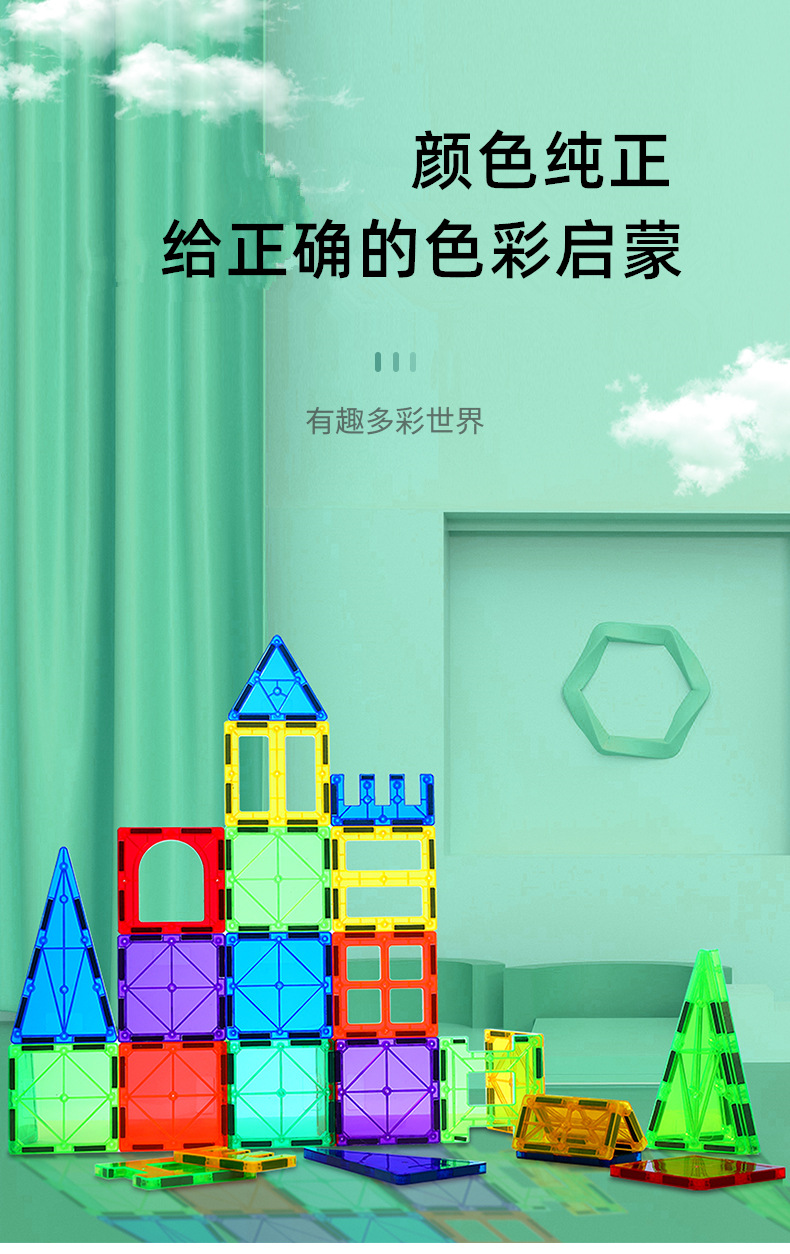 컬러 창 자기 조각 큰 입자 플라스틱 어린이 장난감 선물 퍼즐 빌딩 블록 투명 플라스틱 머리카락 생성 추적스토어 가기