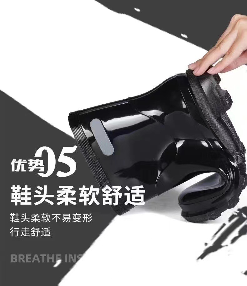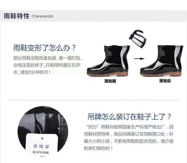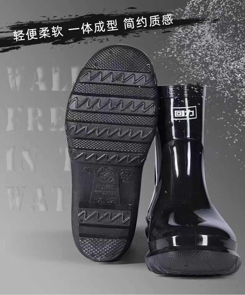 Huili 레인 슈즈 남성용 528 짧은 레인 부츠 광산 물 신발 야간 작업 반사 방수 부츠 내마모성 고무 신발 도매