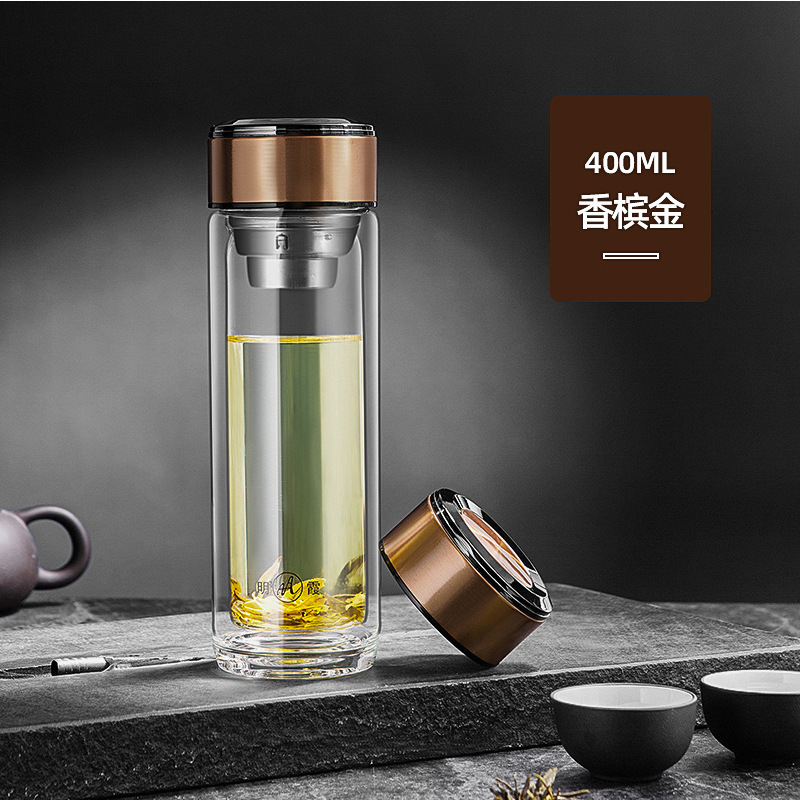 Mingxia 2 중 유리 컵 차 분리 버블 컵 휴대용 사무실 가정 물 컵 개업 선물 컵 인쇄