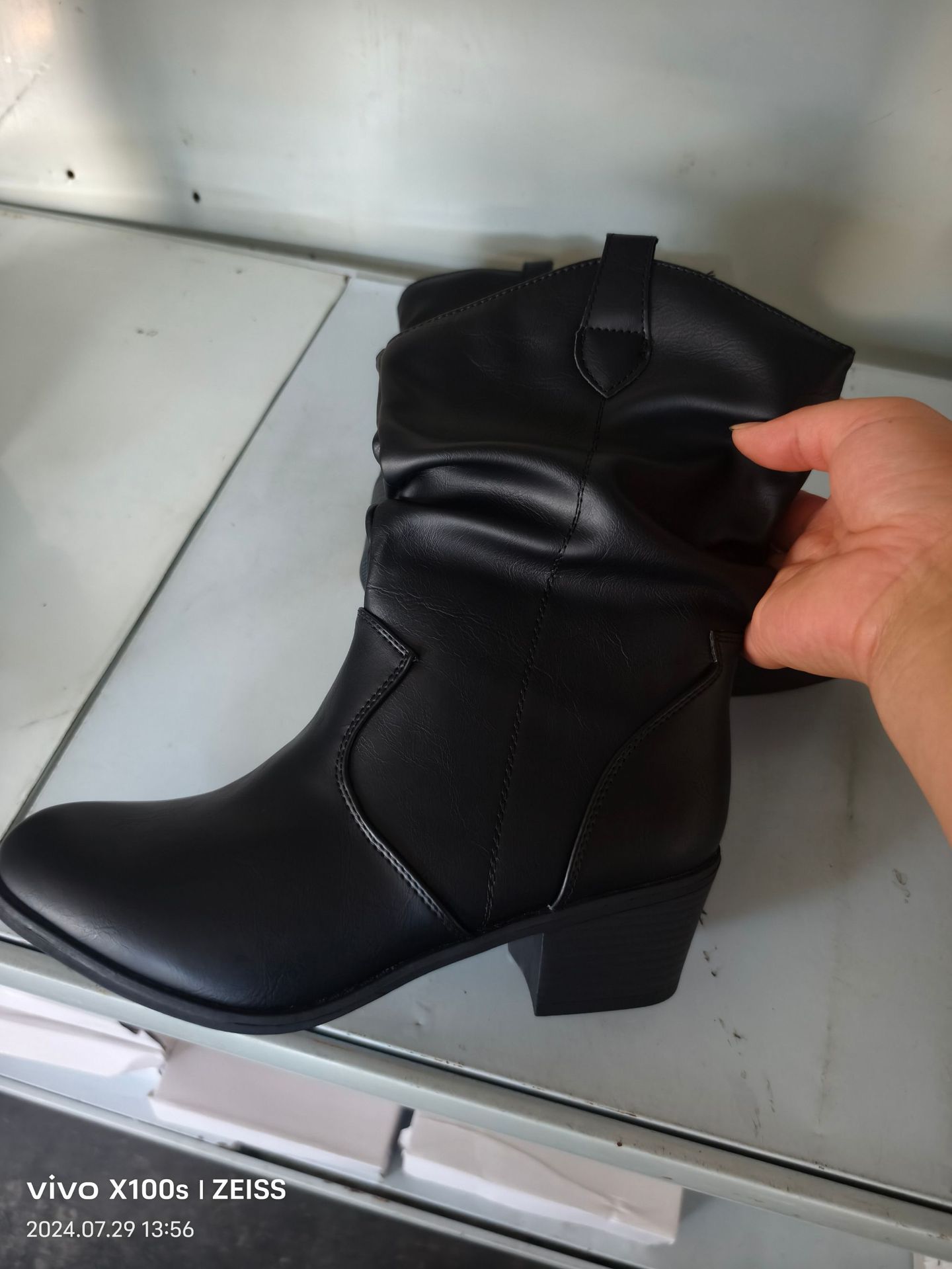 2023 새로운 플러스 사이즈 뾰족한 미드 도움 두꺼운 굽 마틴 부츠 패션 웨스턴 데님 스타일 복고풍 천 패션 부츠 여성용스토어 가기