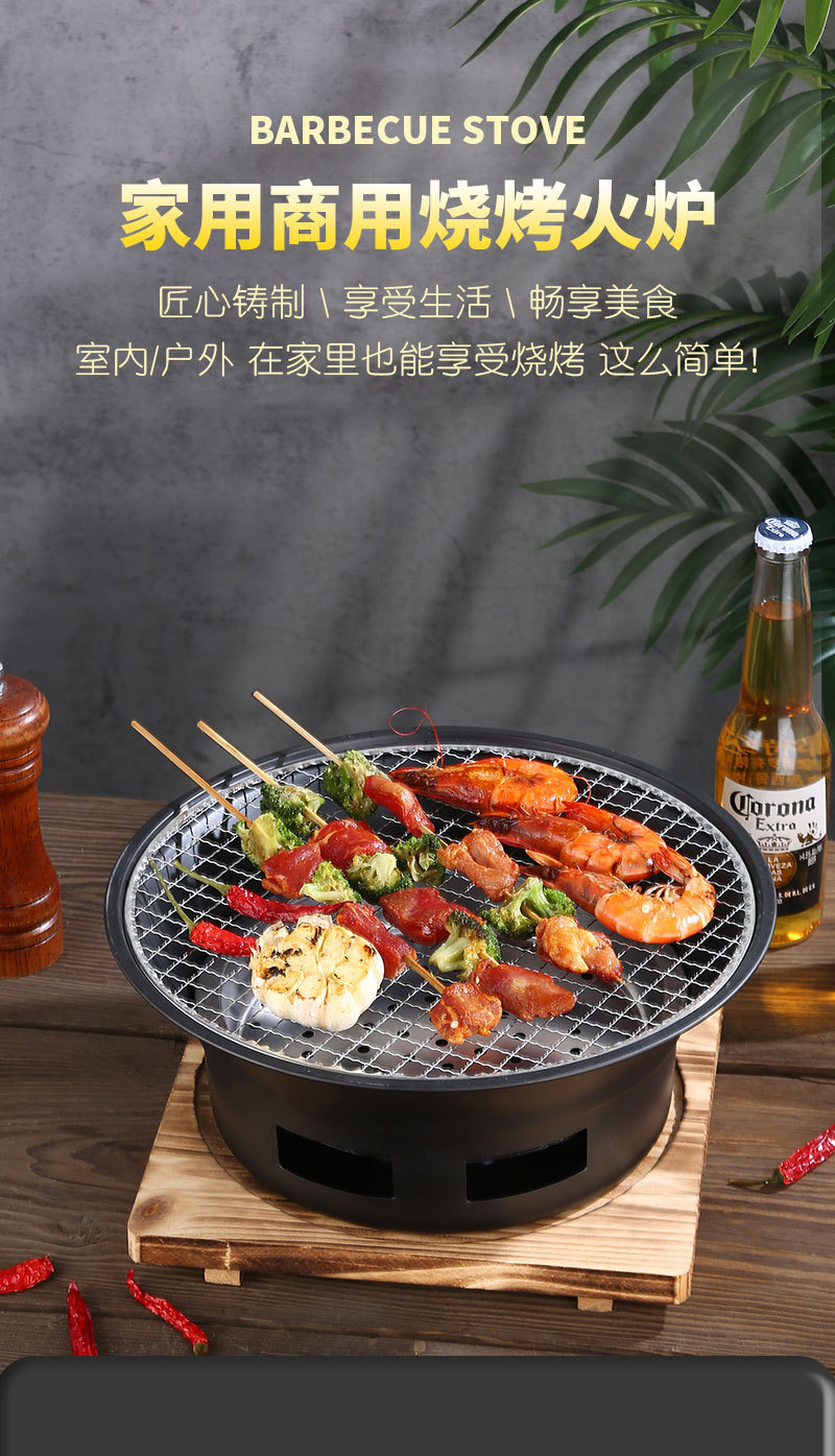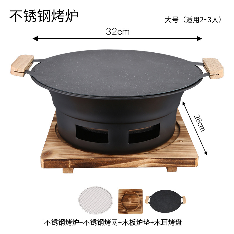 스테인레스 스틸 바베큐 오븐 한국식 숯 가정용 라운드 오븐 야외 그릴 트레이 캠핑 저녁 식사 휴대용 바베큐 오븐스토어 가기