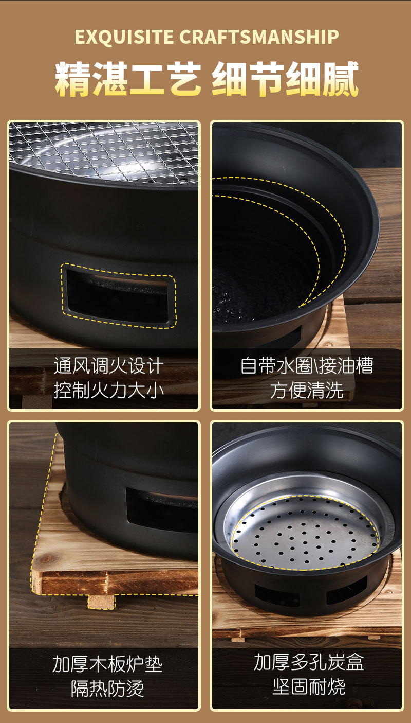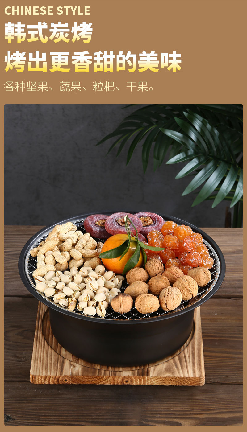 스테인레스 스틸 바베큐 오븐 한국식 숯 가정용 라운드 오븐 야외 그릴 트레이 캠핑 저녁 식사 휴대용 바베큐 오븐