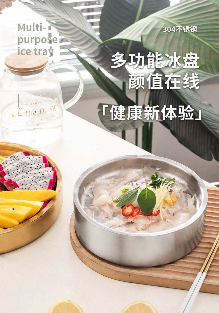 304 스테인레스 스틸 연어 사시미 접시 건조 얼음 접시 생선 특수 물이 채워진 얼음 접시 스시 셀프 서비스 해산물 플래터스토어 가기