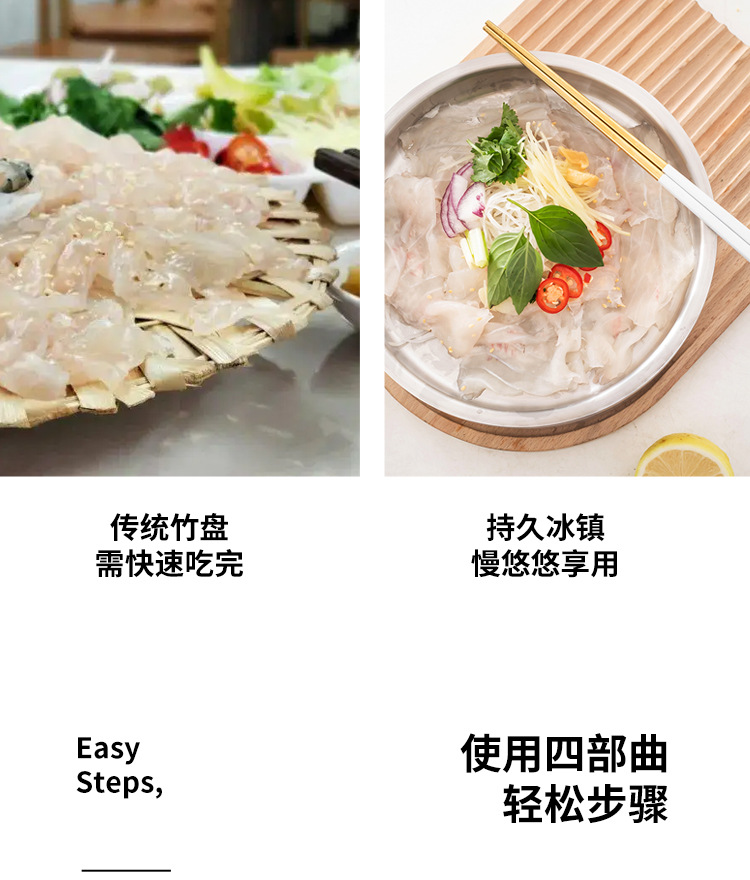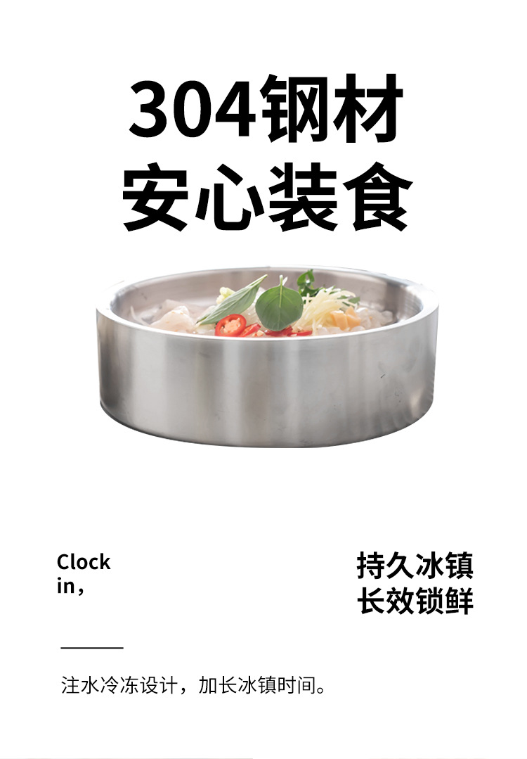 304 스테인레스 스틸 연어 사시미 접시 건조 얼음 접시 생선 특수 물이 채워진 얼음 접시 스시 셀프 서비스 해산물 플래터