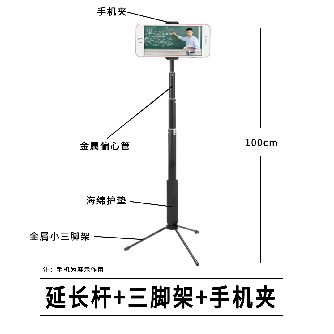 • 130cm 연장봉 + 소형 금속 삼각대 + 휴대폰 클립