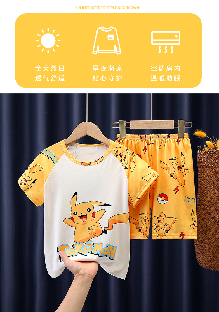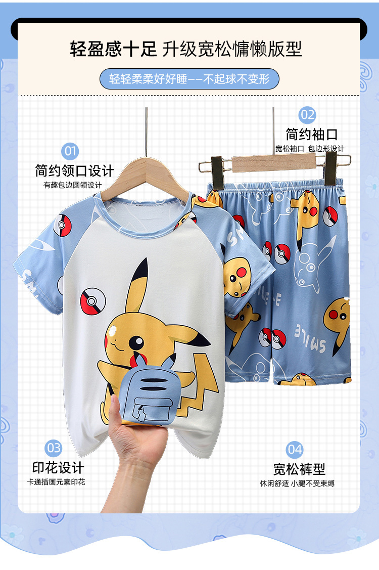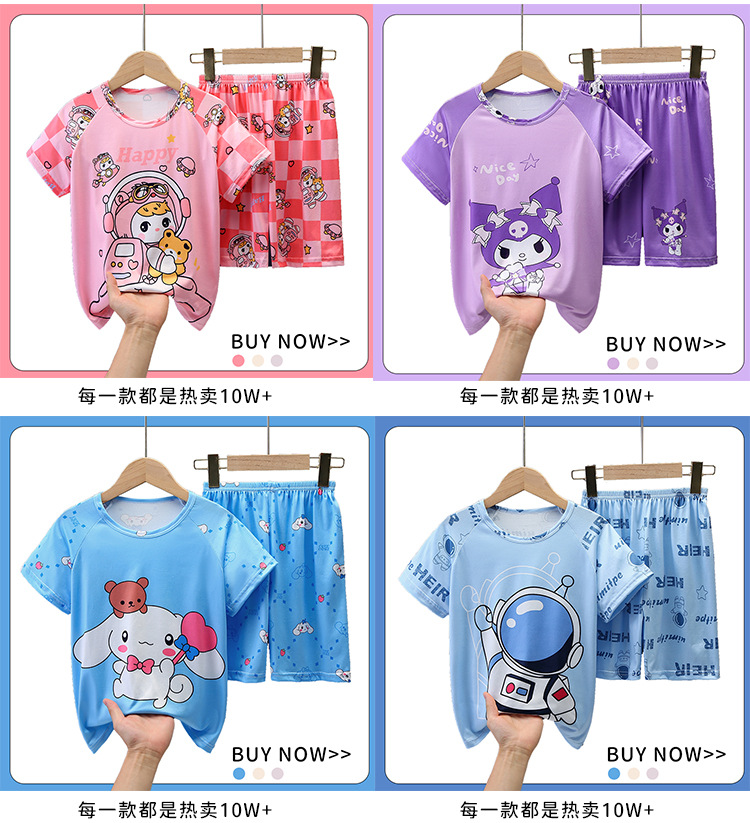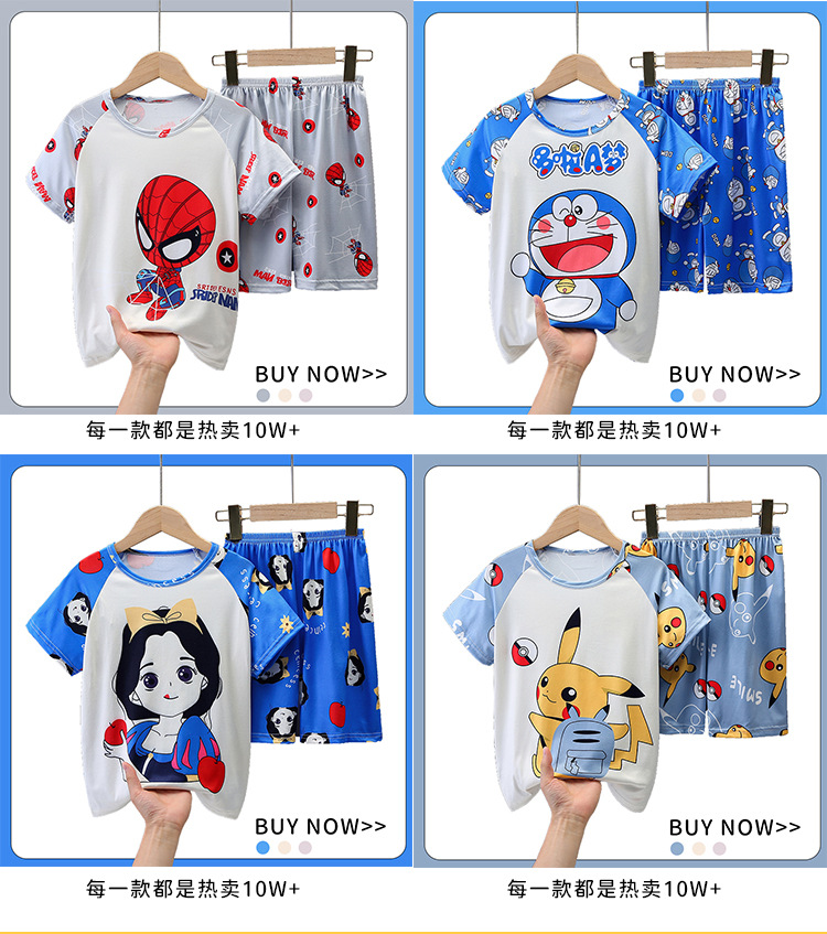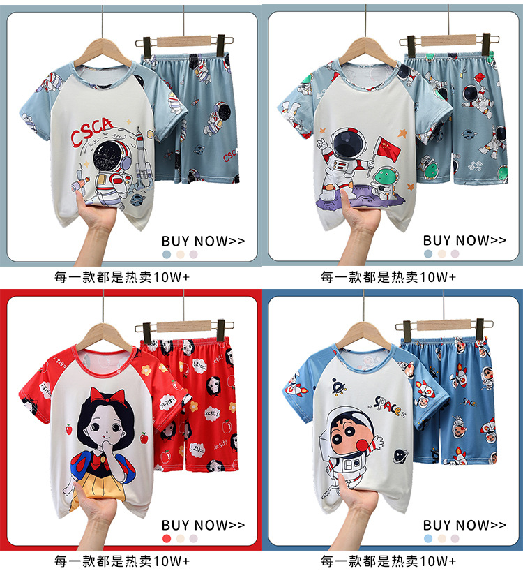어린이 소년 잠옷 여름 얇은 반팔 소녀의 여름 아기의 가정 옷 만화 큰 소년의 세트스토어 가기