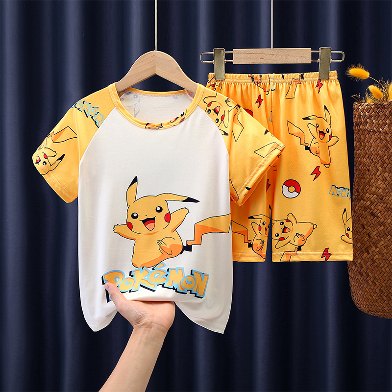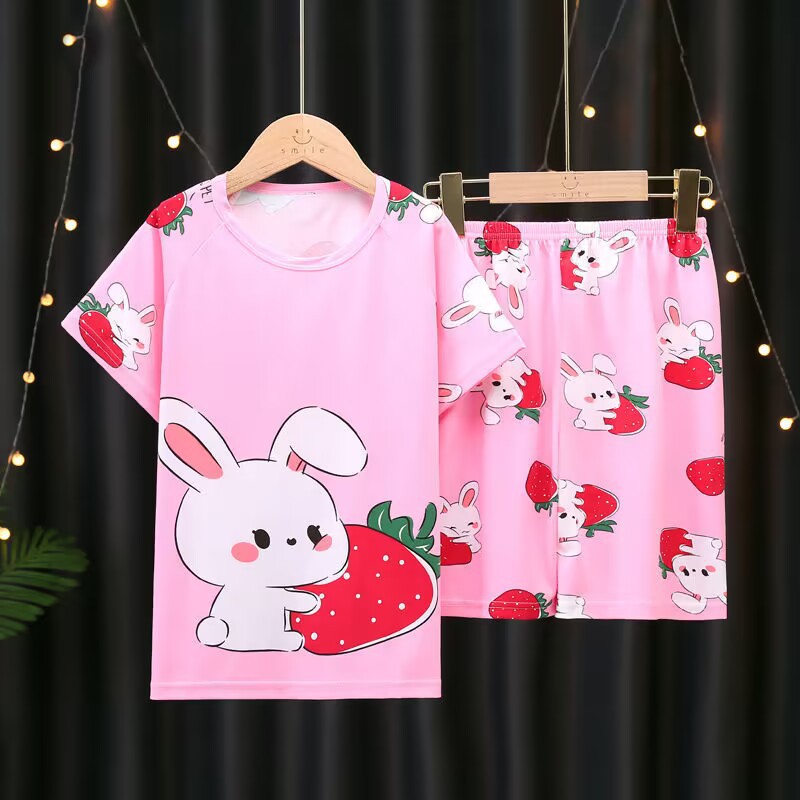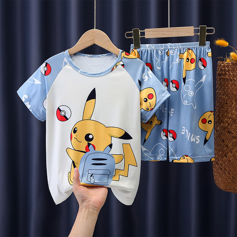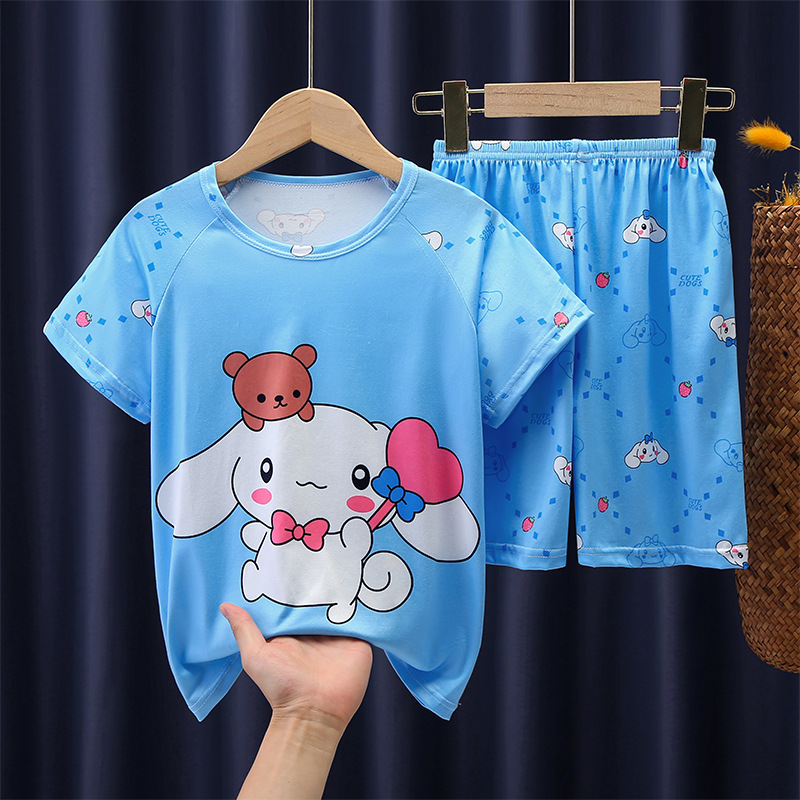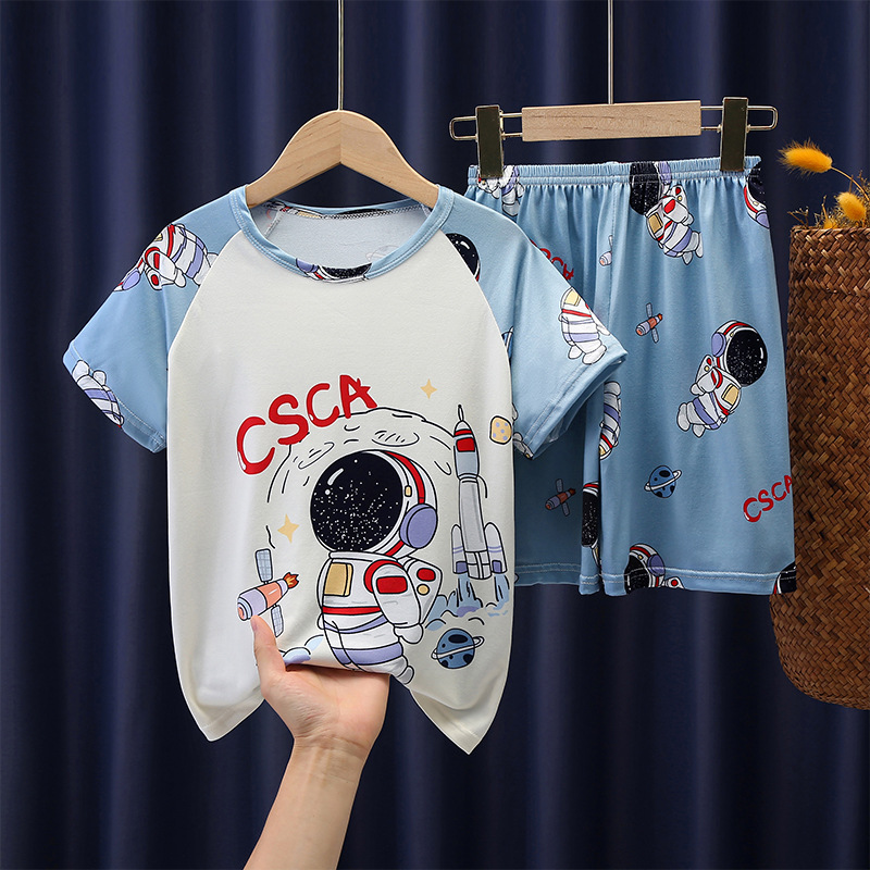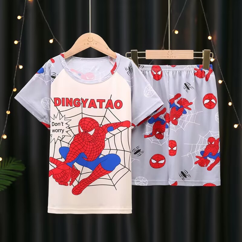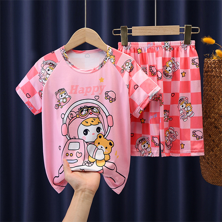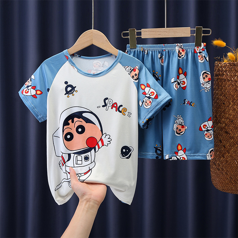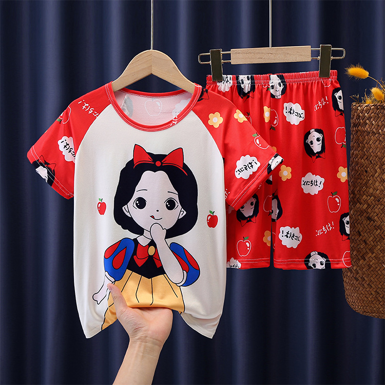 어린이 소년 잠옷 여름 얇은 반팔 소녀의 여름 아기의 가정 옷 만화 큰 소년의 세트