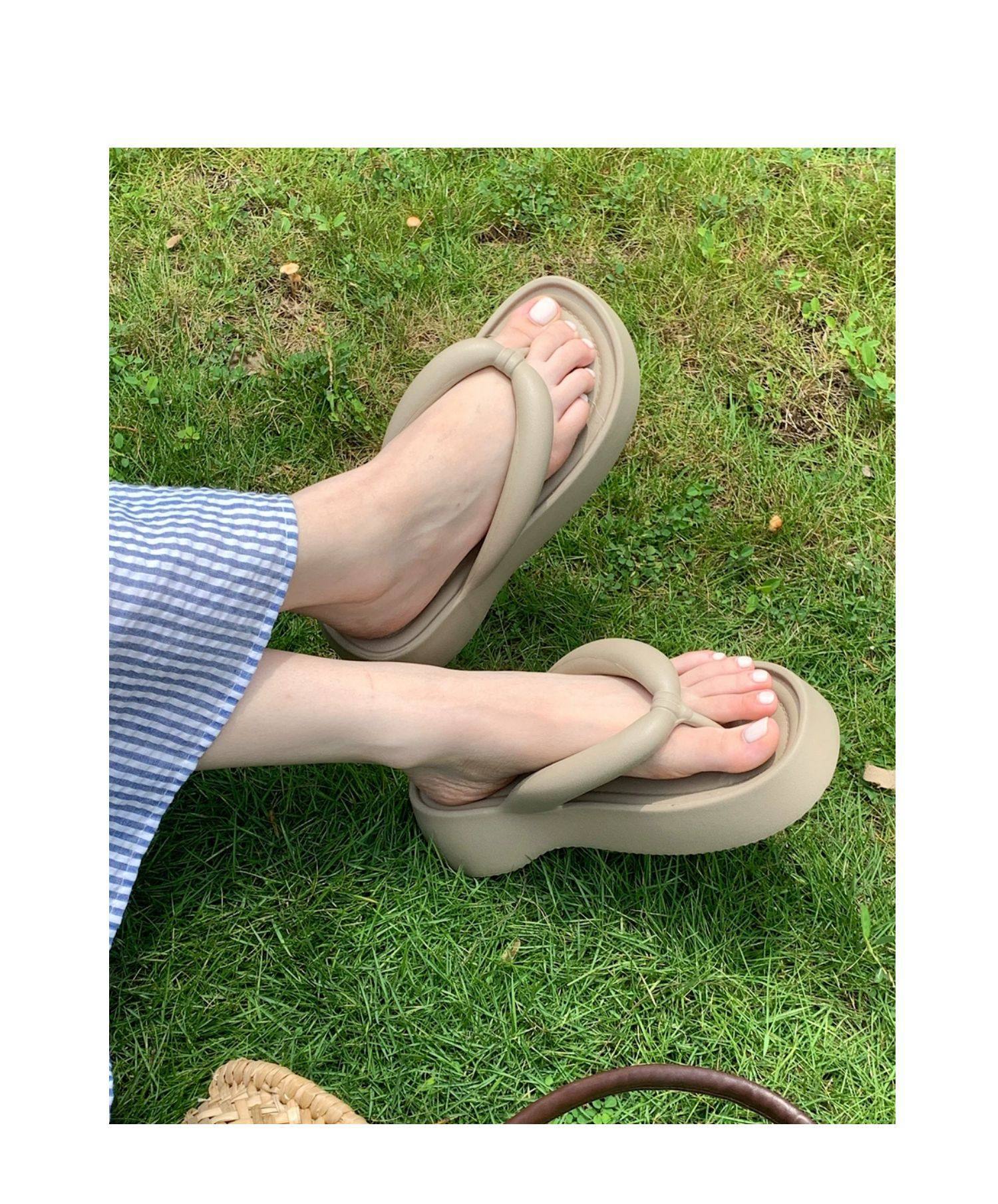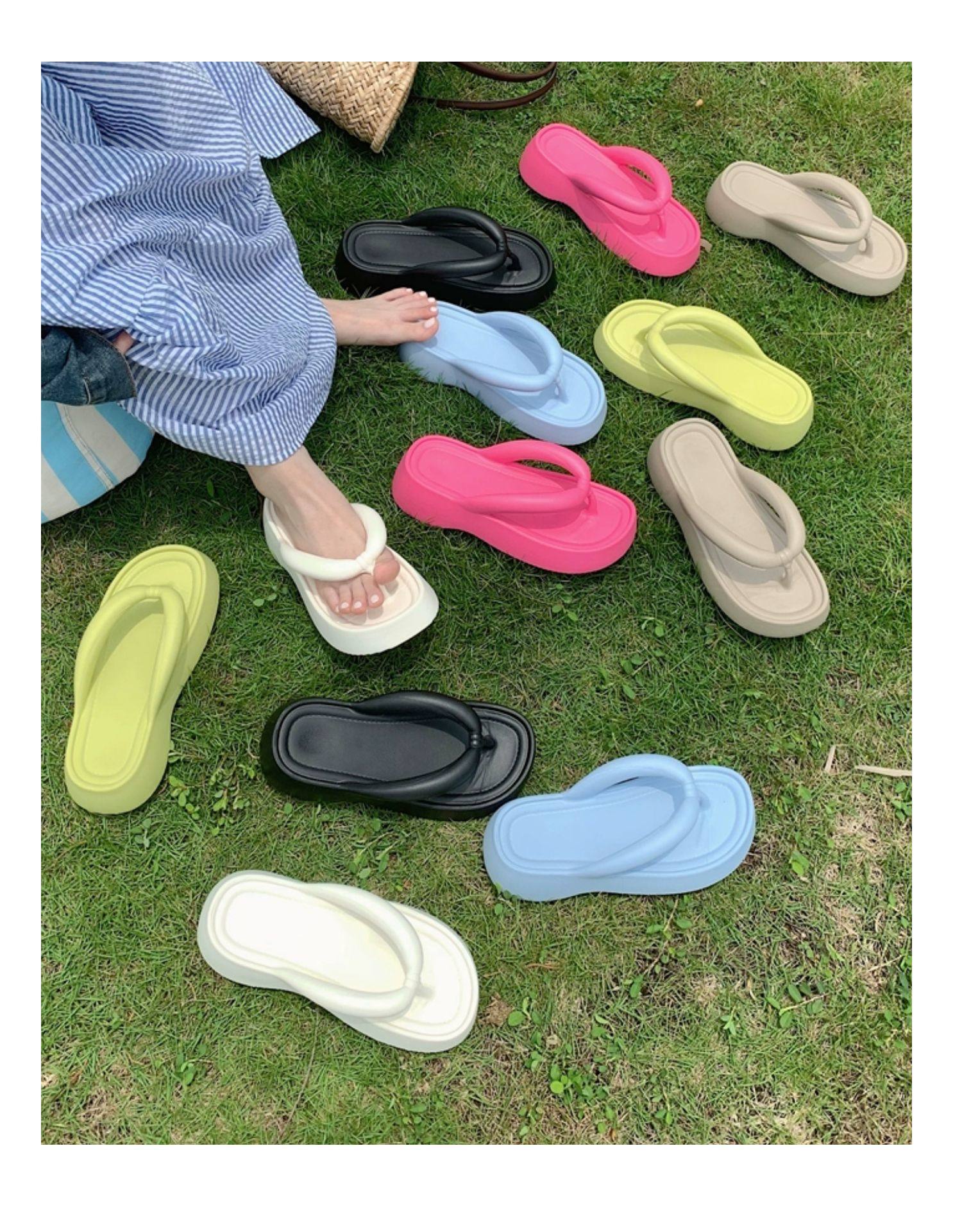 높이 증가 두꺼운 밑창 페어리 스타일 간단한 엿 느낌 샌들과 슬리퍼 여성용 여름 새로운 스타일 겉옷 학생 클립 플립 플롭