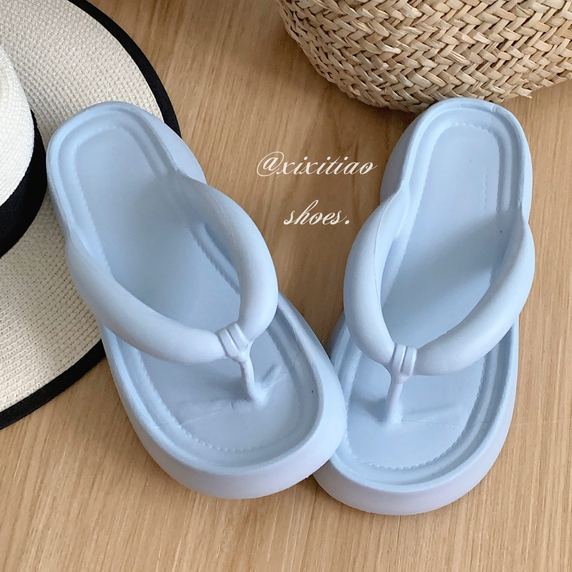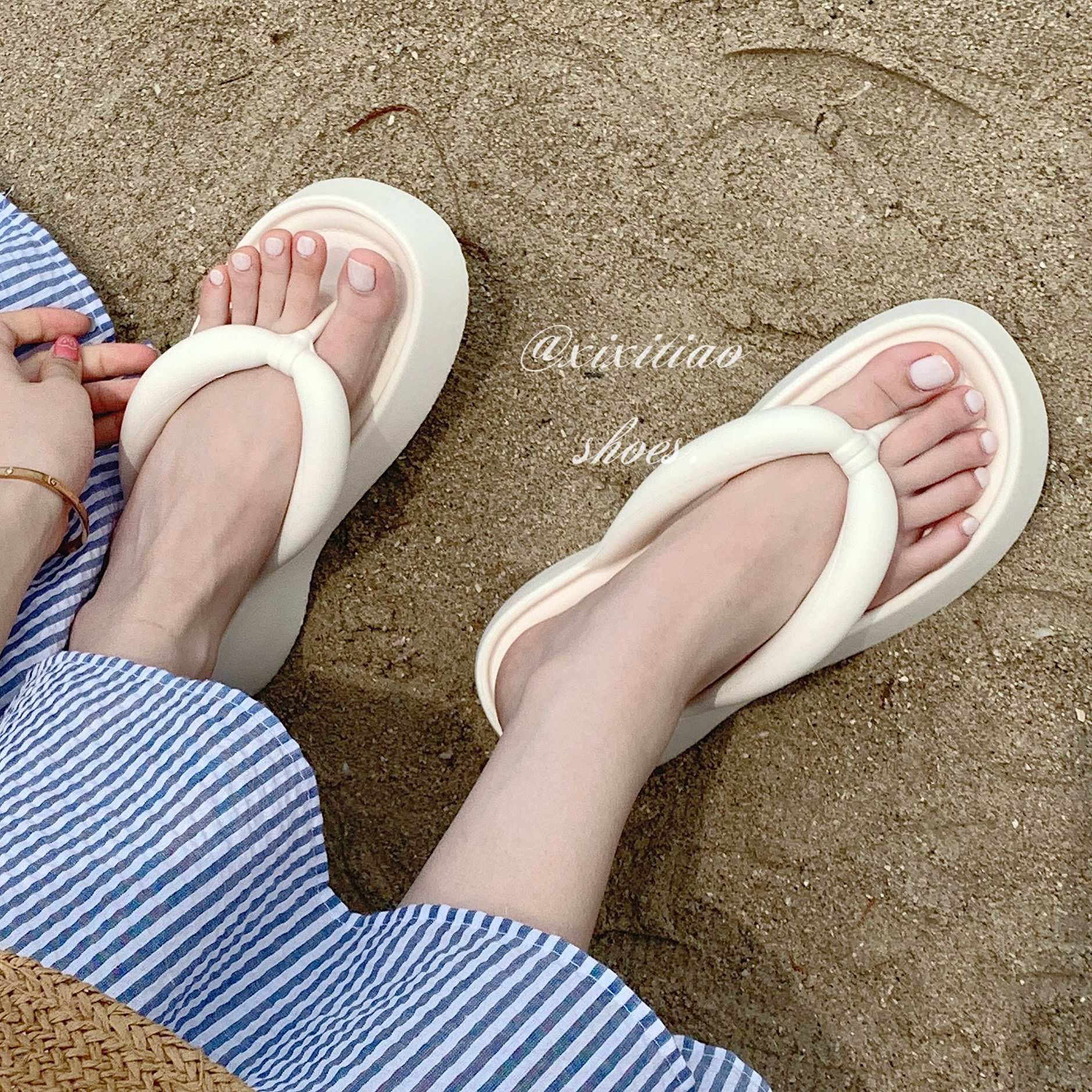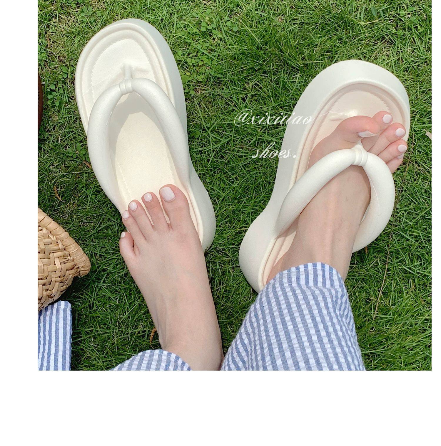 높이 증가 두꺼운 밑창 페어리 스타일 간단한 엿 느낌 샌들과 슬리퍼 여성용 여름 새로운 스타일 겉옷 학생 클립 플립 플롭스토어 가기
