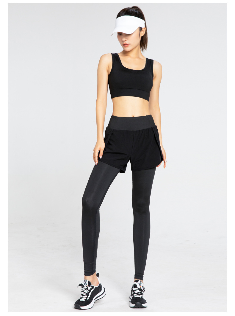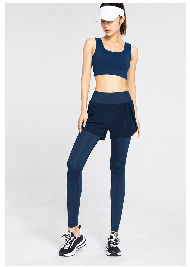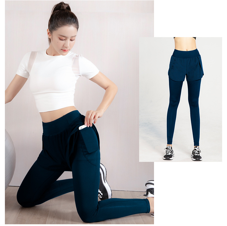 요가 바지 여성용 새로운 가짜 투피스 사이드 포켓 속건 바지 하이 웨이스트 슬리밍 스트레치 러닝 트레이닝 피트니스 바지스토어 가기