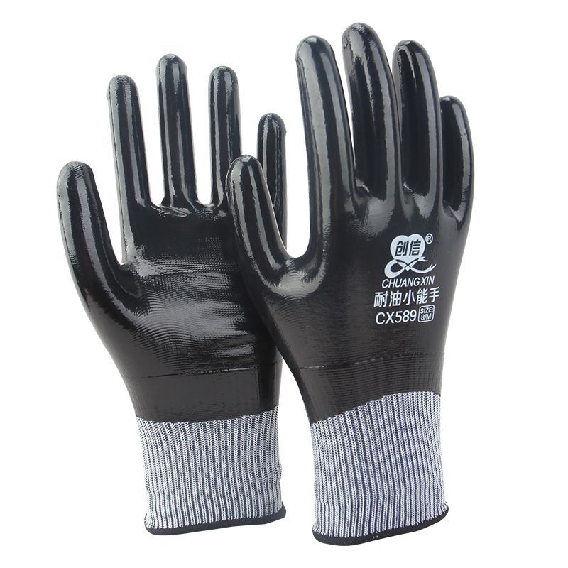 내마모성 니트릴 Chuangxin 노동 보호 장갑 내유성 방수 미끄럼 방지 디핑 산업용 화학 완전 걸이 유지 관리 보호 장갑스토어 가기