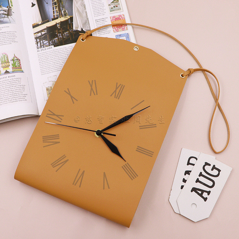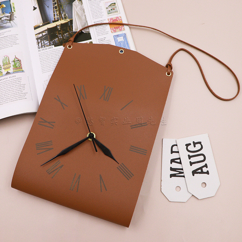 크리 에이 티브 장식품 벽시계 홈 거실 시계 장식품 매달려 복고풍 가죽 벽시계 북유럽 스타일 벽시계