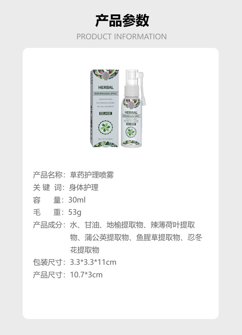 EELHOE 허벌 케어 스프레이 부드럽게 케어하고 영양을 공급하는 바디 스킨 외부 케어 스프레이