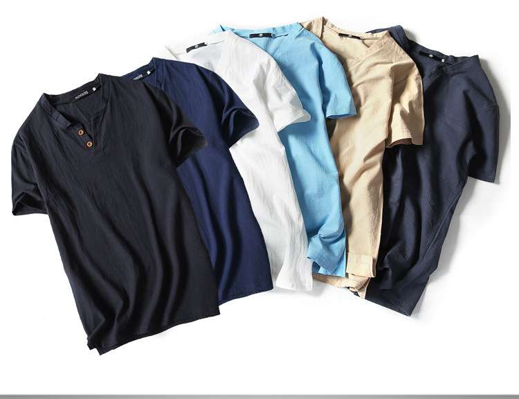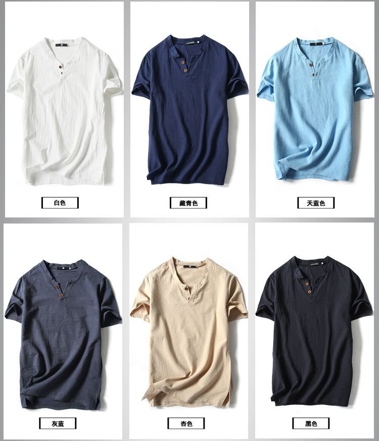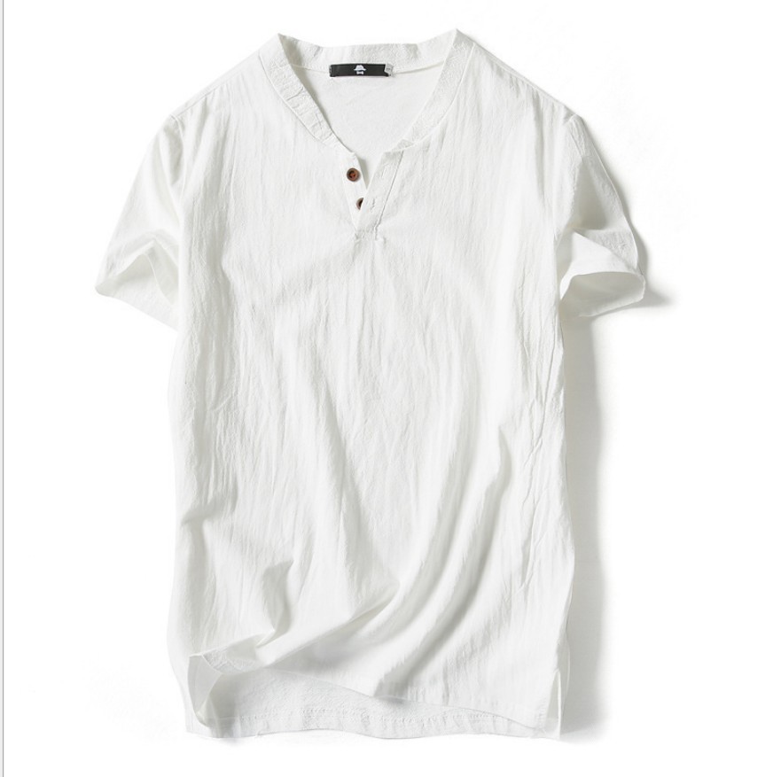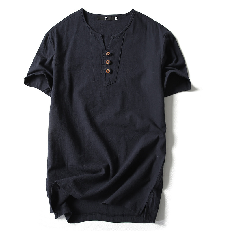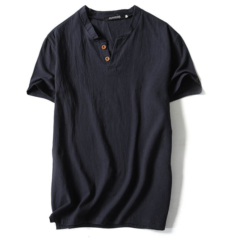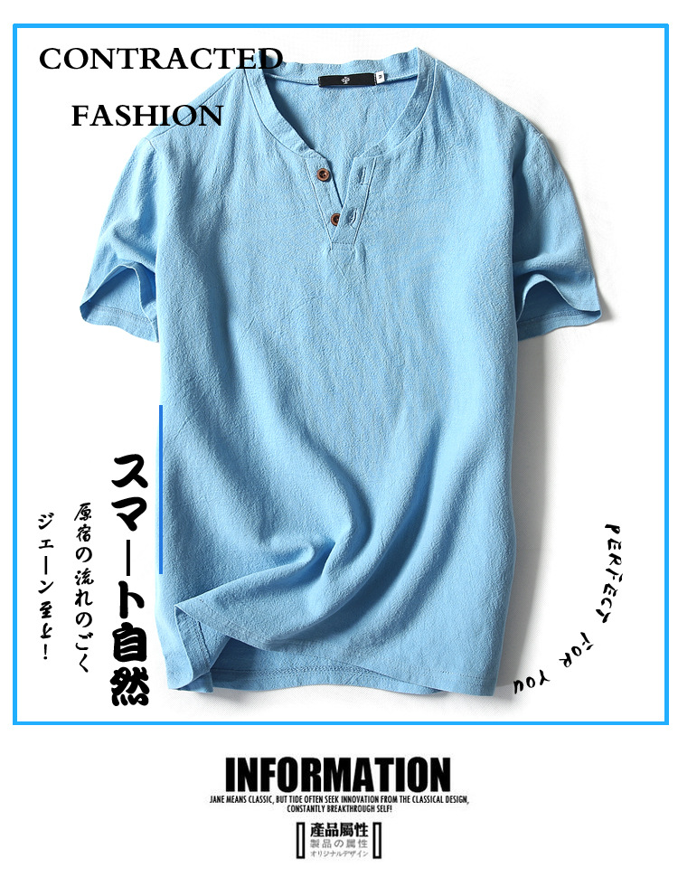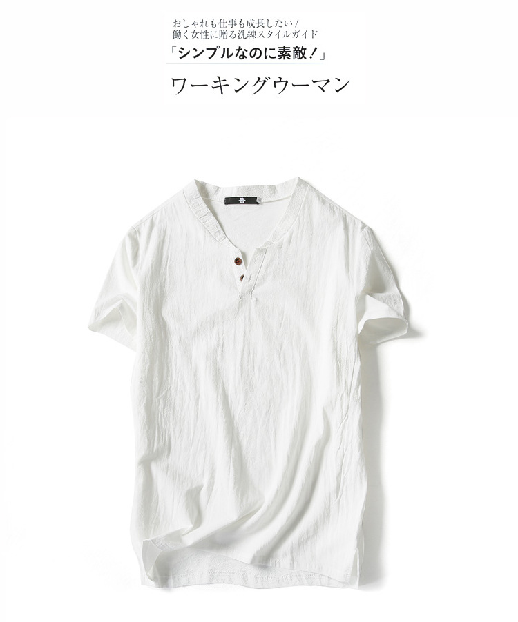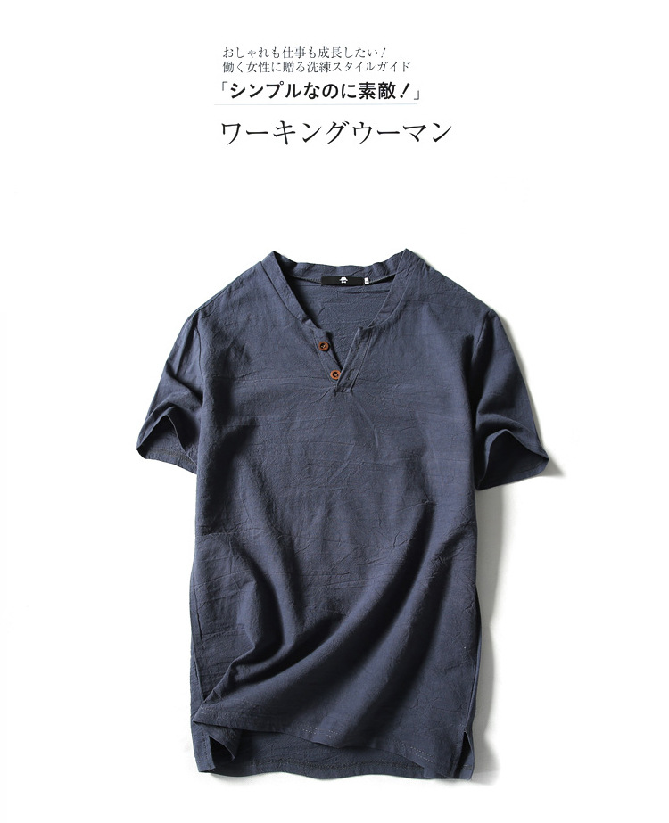 여름 일본 반팔 티셔츠 남성용 빈티지 면과 린넨 반팔 트렌디 한 남성용 얇은 반팔 티셔츠 인터넷 연예인 같은 스타일