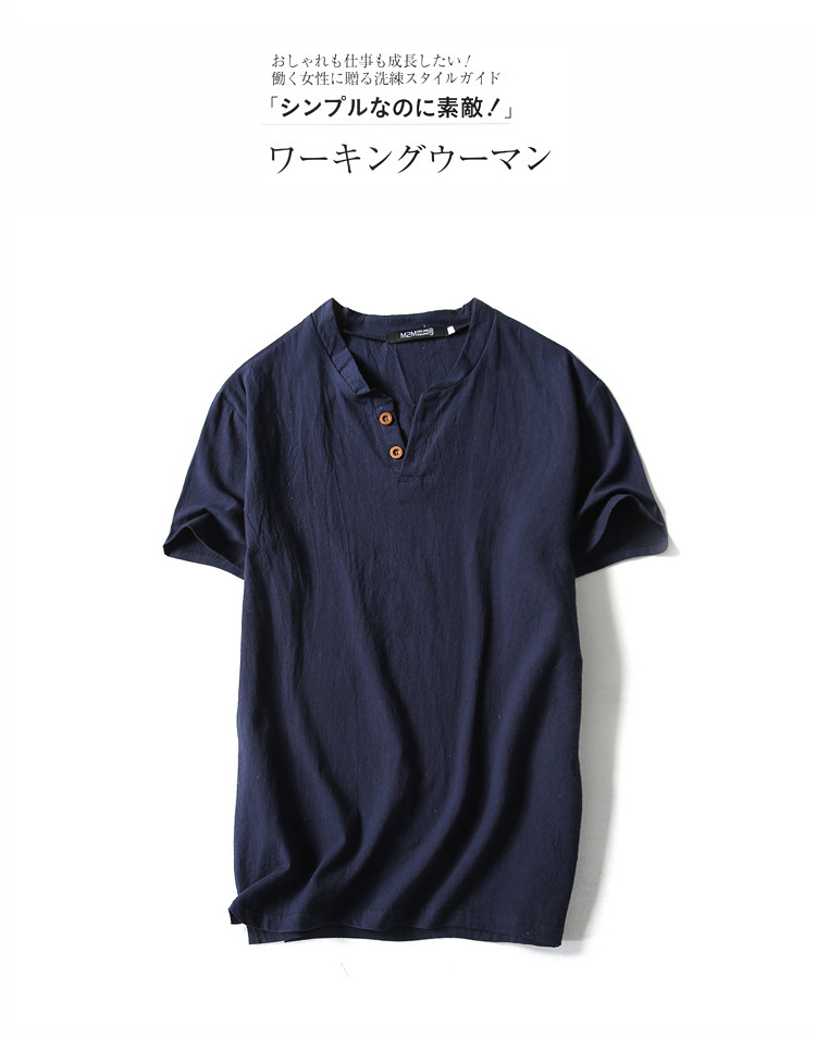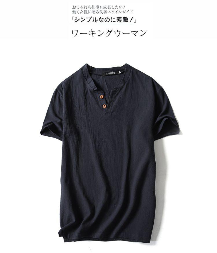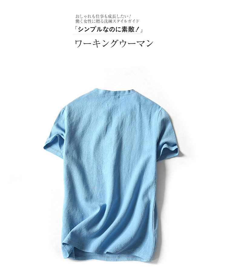 여름 일본 반팔 티셔츠 남성용 빈티지 면과 린넨 반팔 트렌디 한 남성용 얇은 반팔 티셔츠 인터넷 연예인 같은 스타일스토어 가기