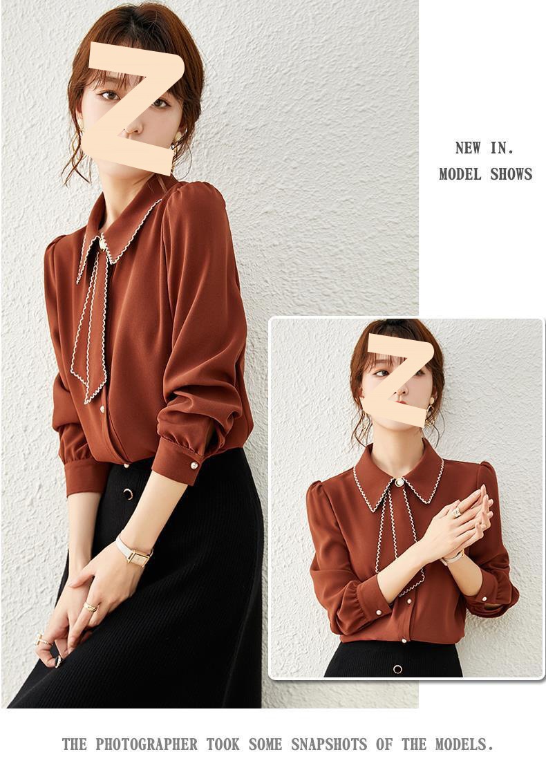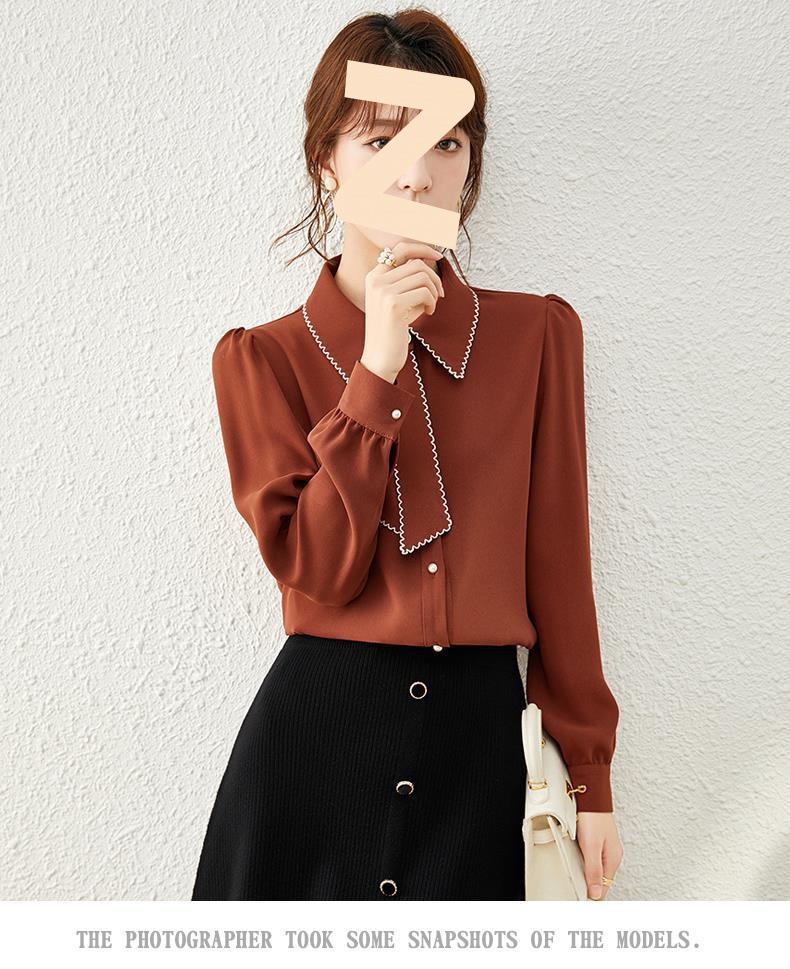 2025 가을 겨울 신상 디자인 감각적인 여성용 긴팔 셔츠, 우아하고 다재다능한 쉬폰 셔츠, 베이스 레이어 탑스토어 가기