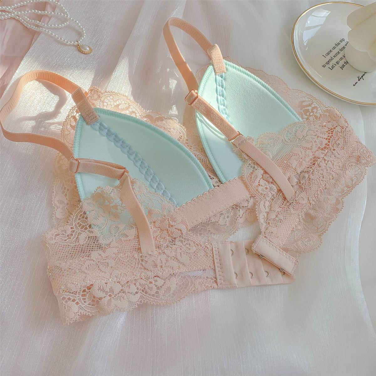 일본식 순수 섹시 란제리 소녀의 레이스 얇은 여름 브래지어 스틸 링이없는 여성의 작은 가슴 푸시 업 브래지어스토어 가기