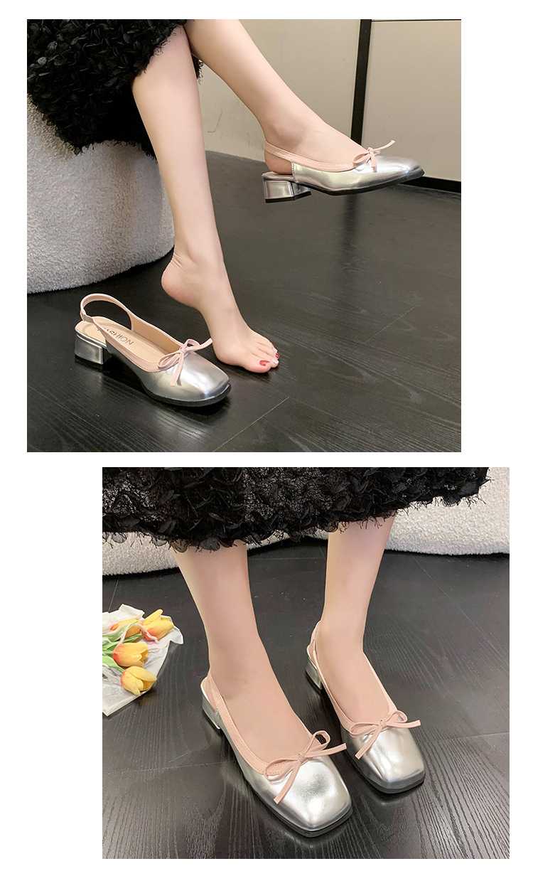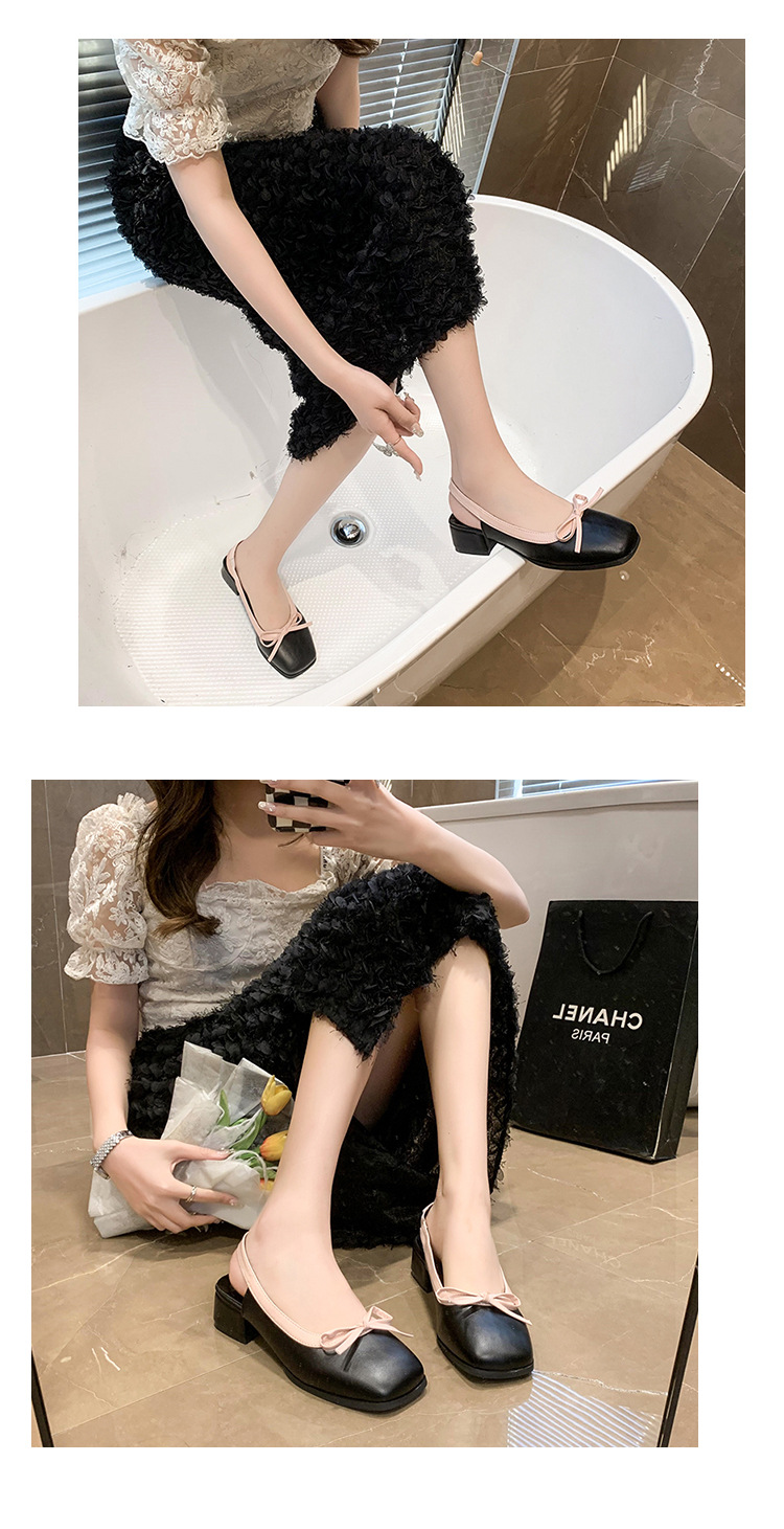 2024 여름 신형 바오터우 샌들 여성 두꺼운 굽 요정 스타일의 프랑스 싱글 레이어 신발 중간 굽 우아한 활 여성 신발스토어 가기