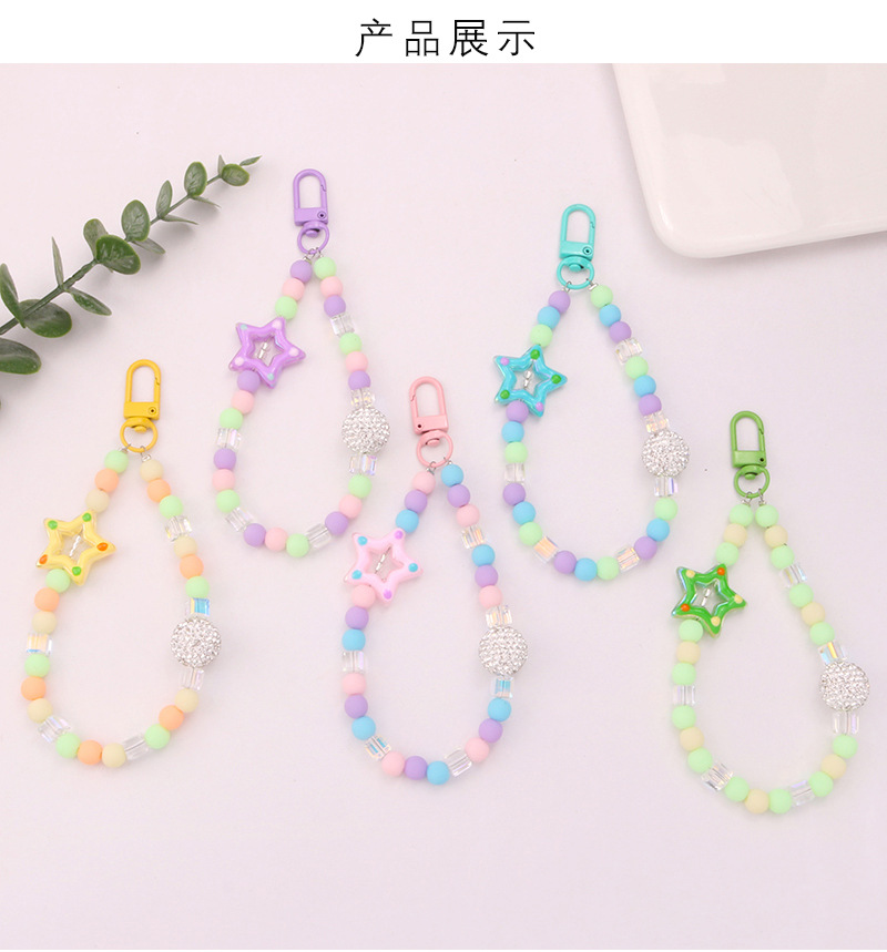 새로운 발견 된 아크릴 다섯개 별 열쇠 고리 펜던트 크리에이티브 컬러 볼 교수형 체인 액세서리 헤드셋 커버 장식