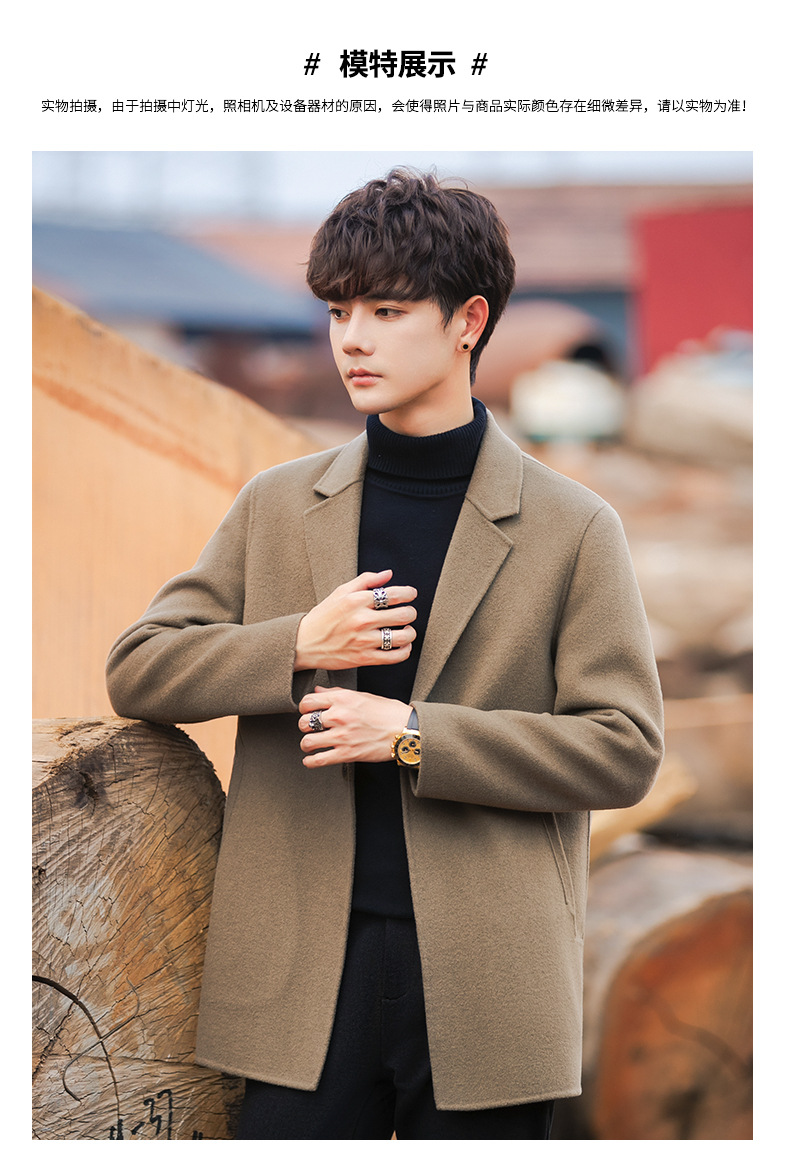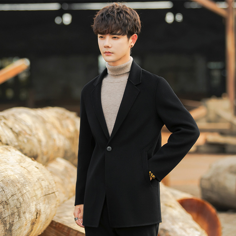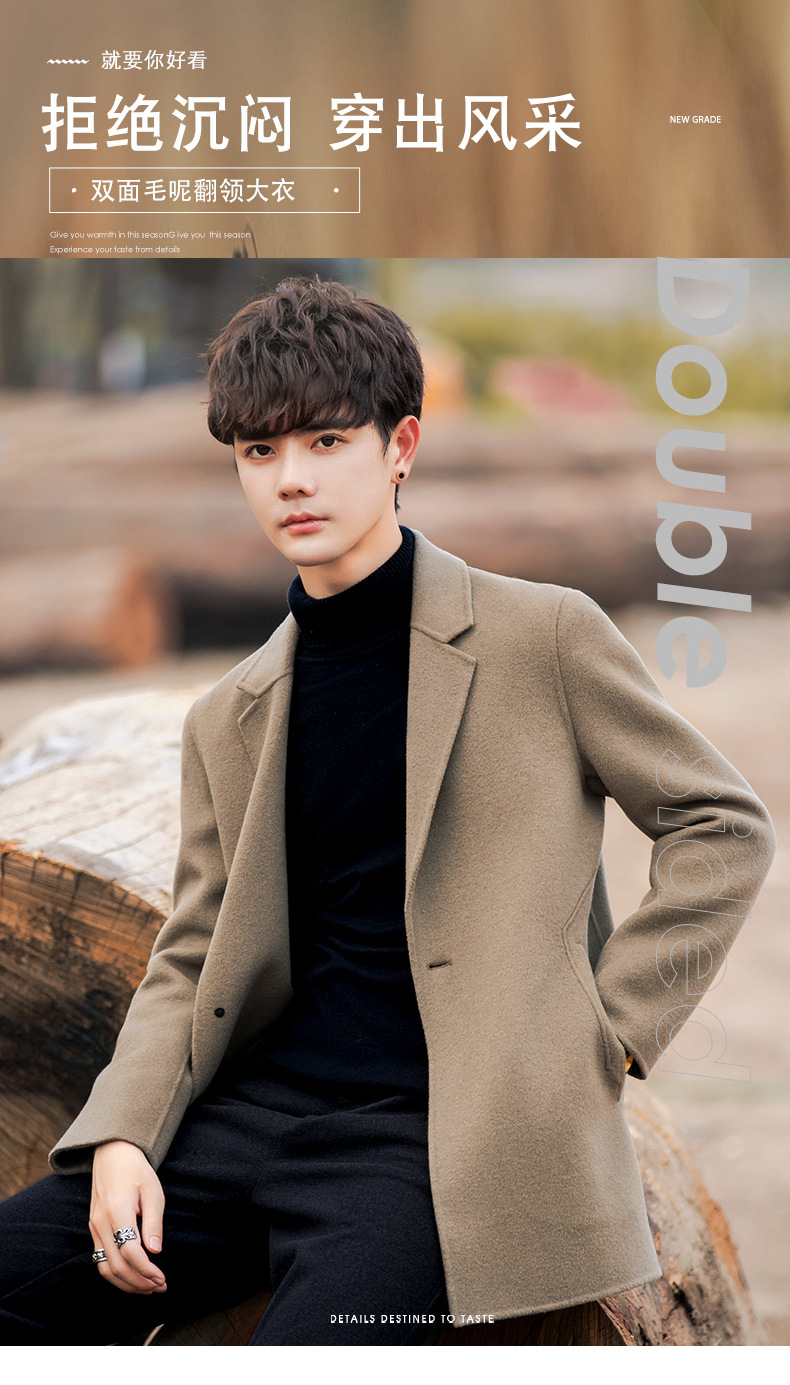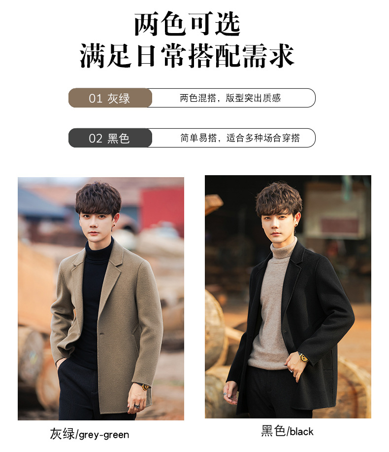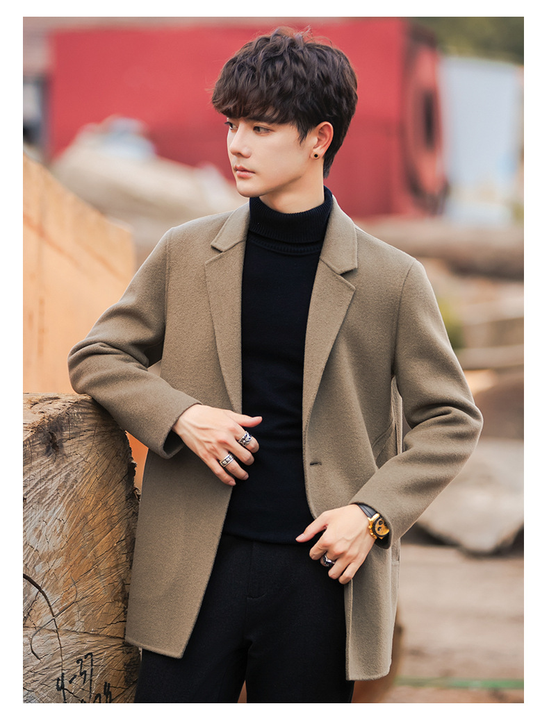 22B09 양면 양모 코트 중간 길이의 한국식 캐시미어 프리 세트 양모 겨울 두꺼운 윈드브레이커 남성복스토어 가기