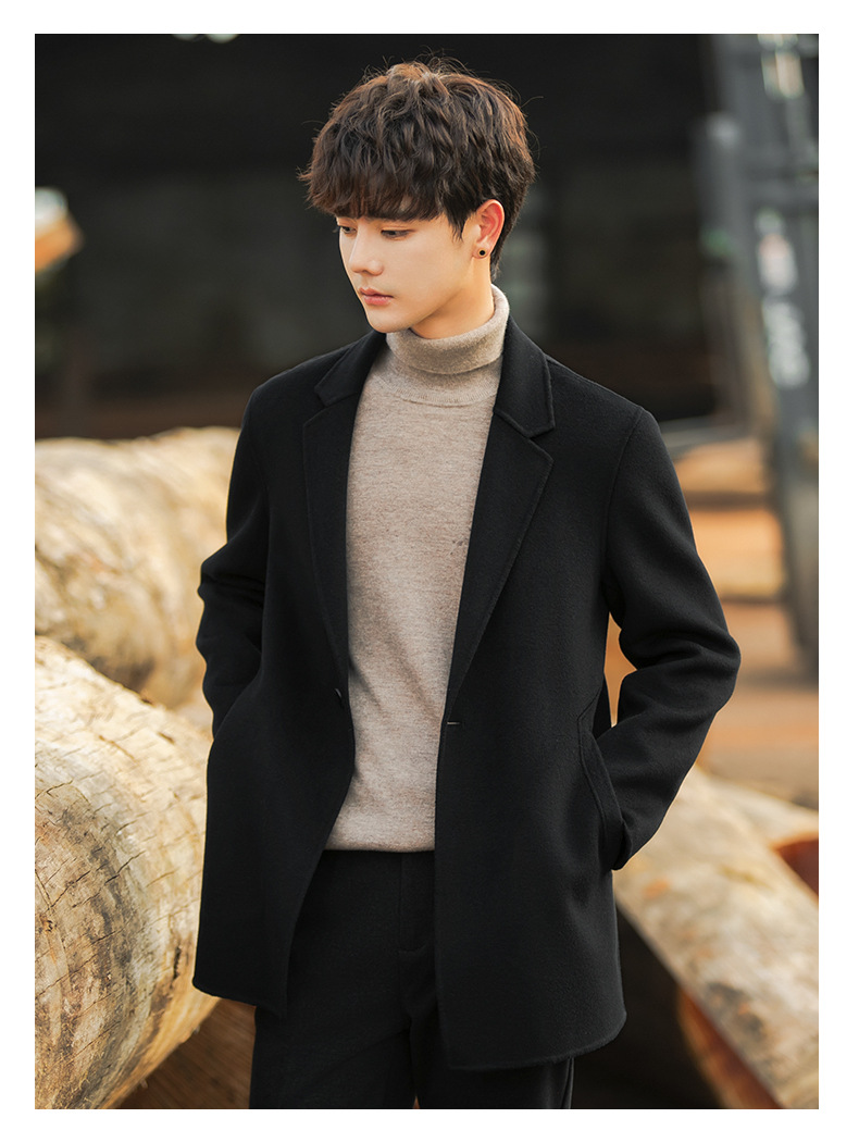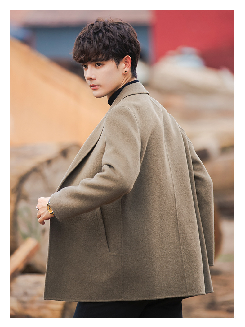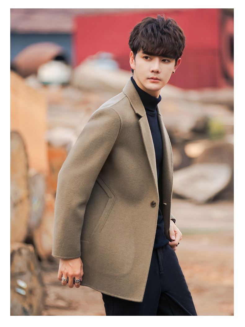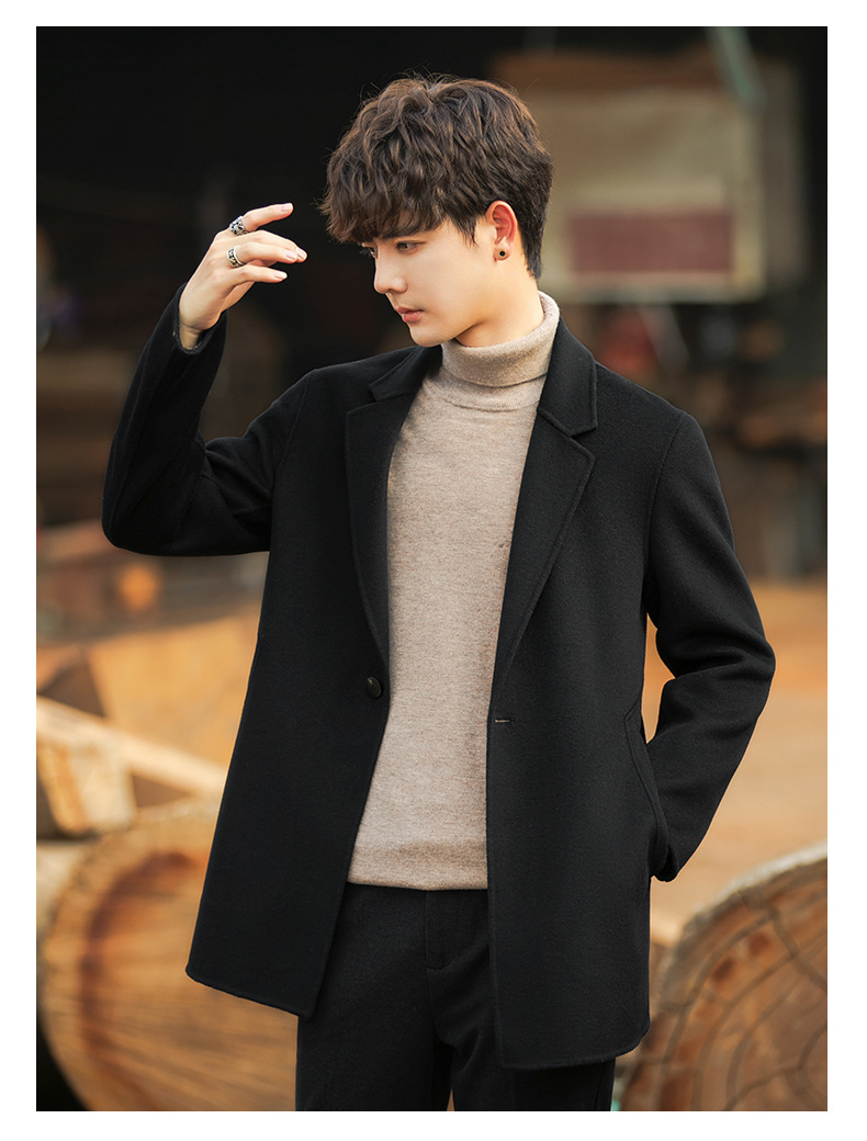 22B09 양면 양모 코트 중간 길이의 한국식 캐시미어 프리 세트 양모 겨울 두꺼운 윈드브레이커 남성복스토어 가기