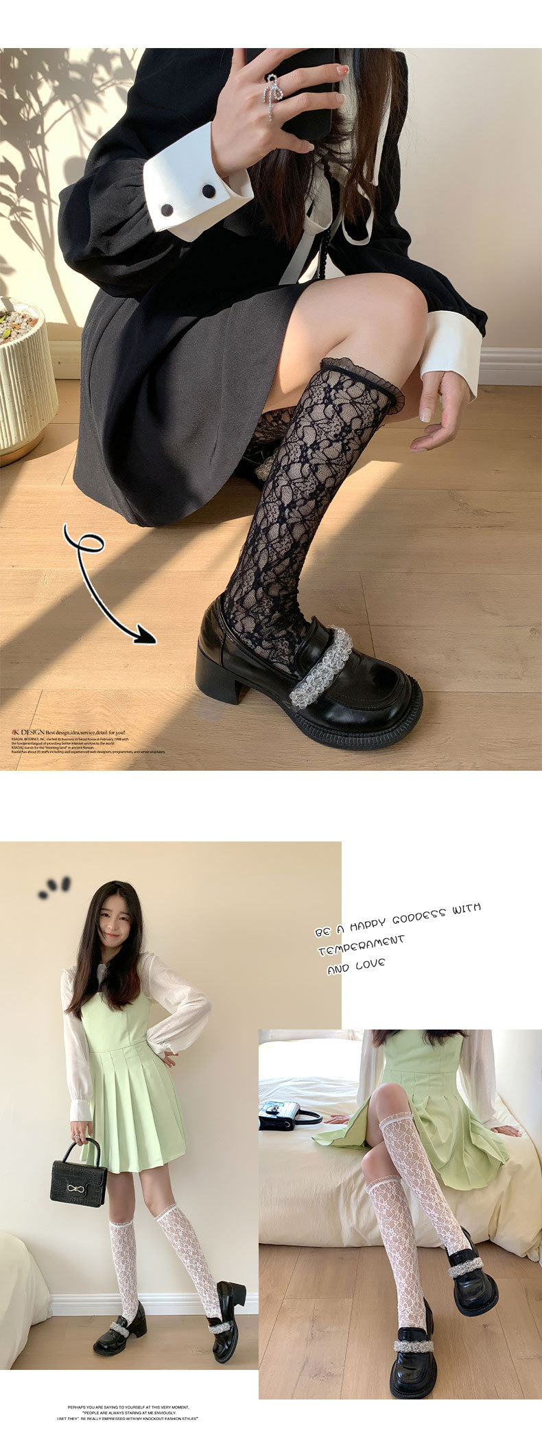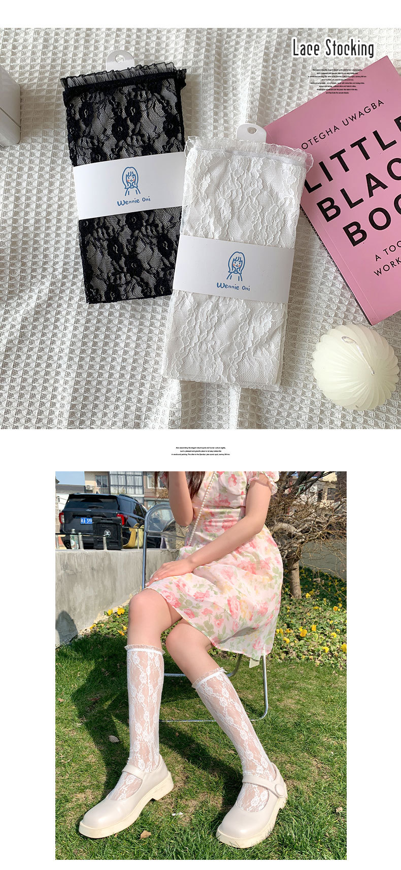 화이트 레이스 중공 양말 어린이 중간 길이 양말 봄과 여름 얇은 일본 귀여운 로리타 JK 송아지 더미 스타킹스토어 가기