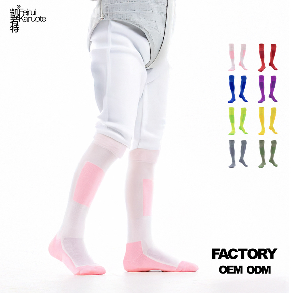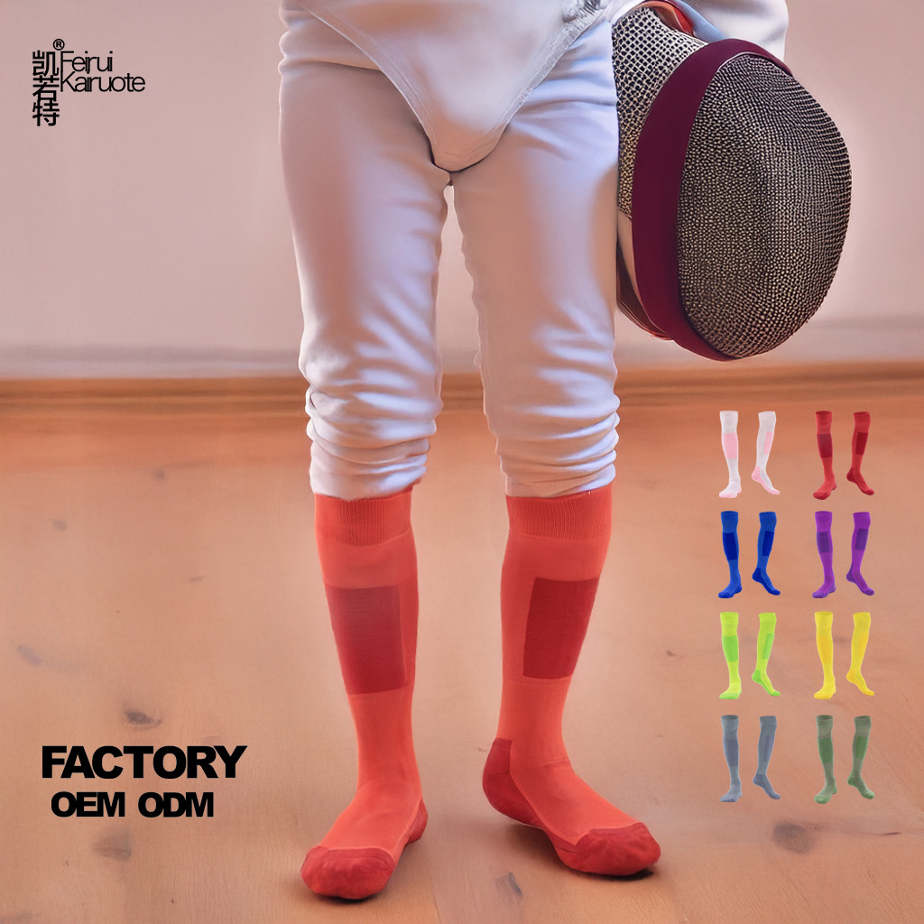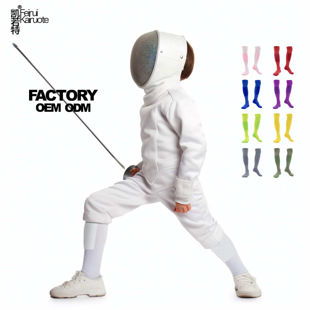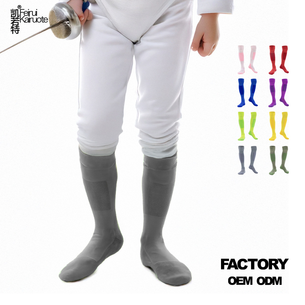 어린이 펜싱 양말 무릎 위 길이의 두꺼운 테리 소재 미끄럼 방지 내마모성 겨울 보온 스포츠 훈련 양말 컬러풀한 긴 양말