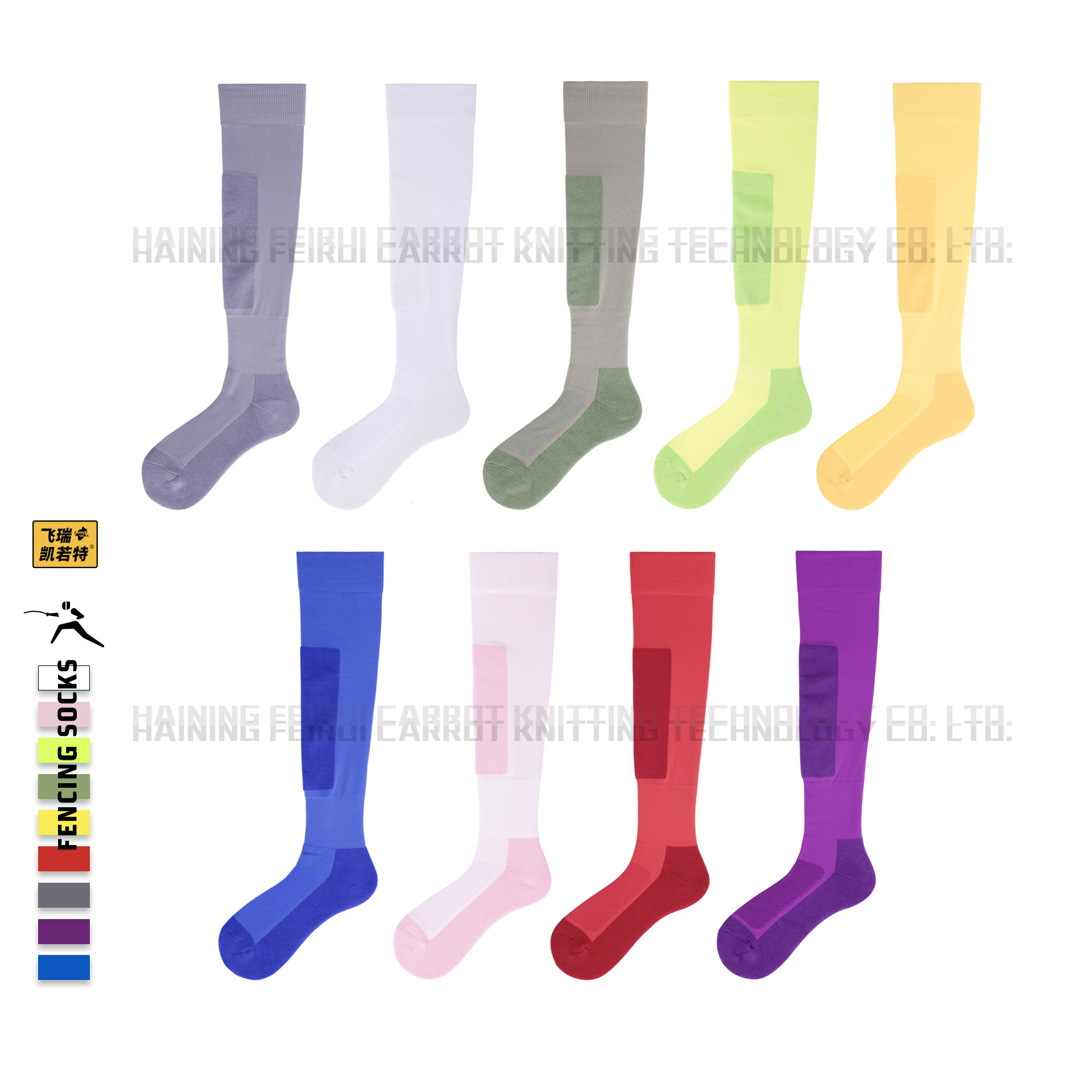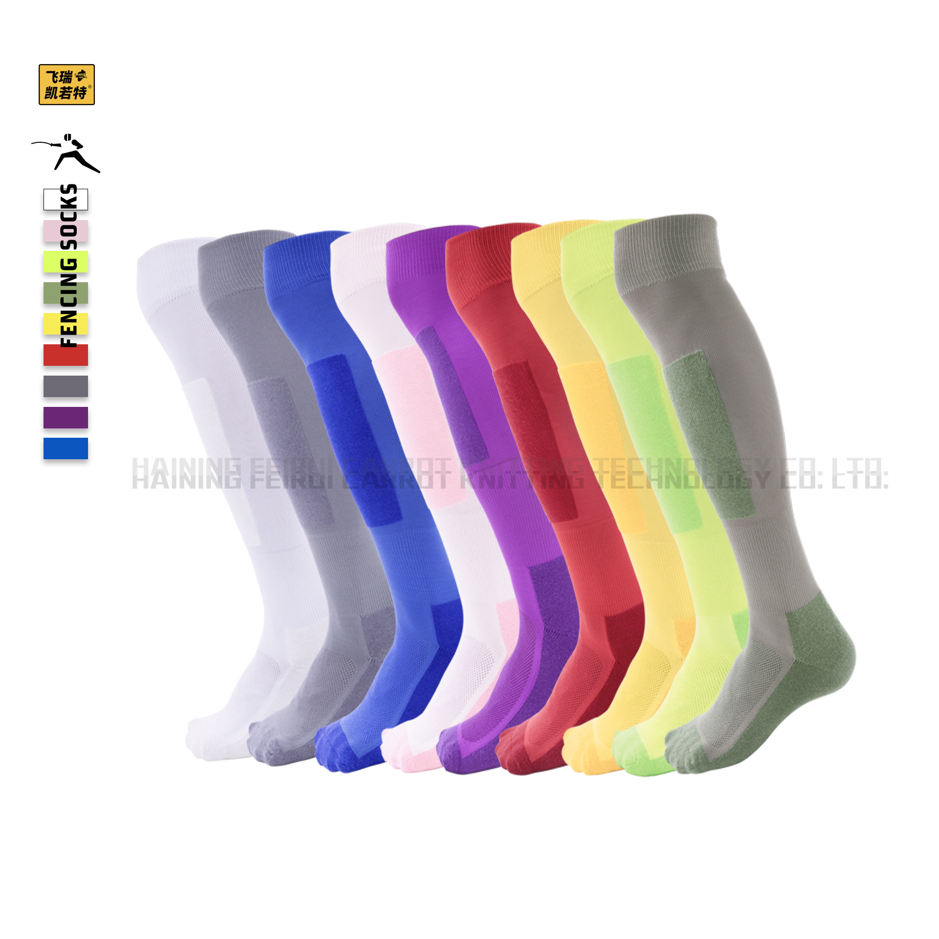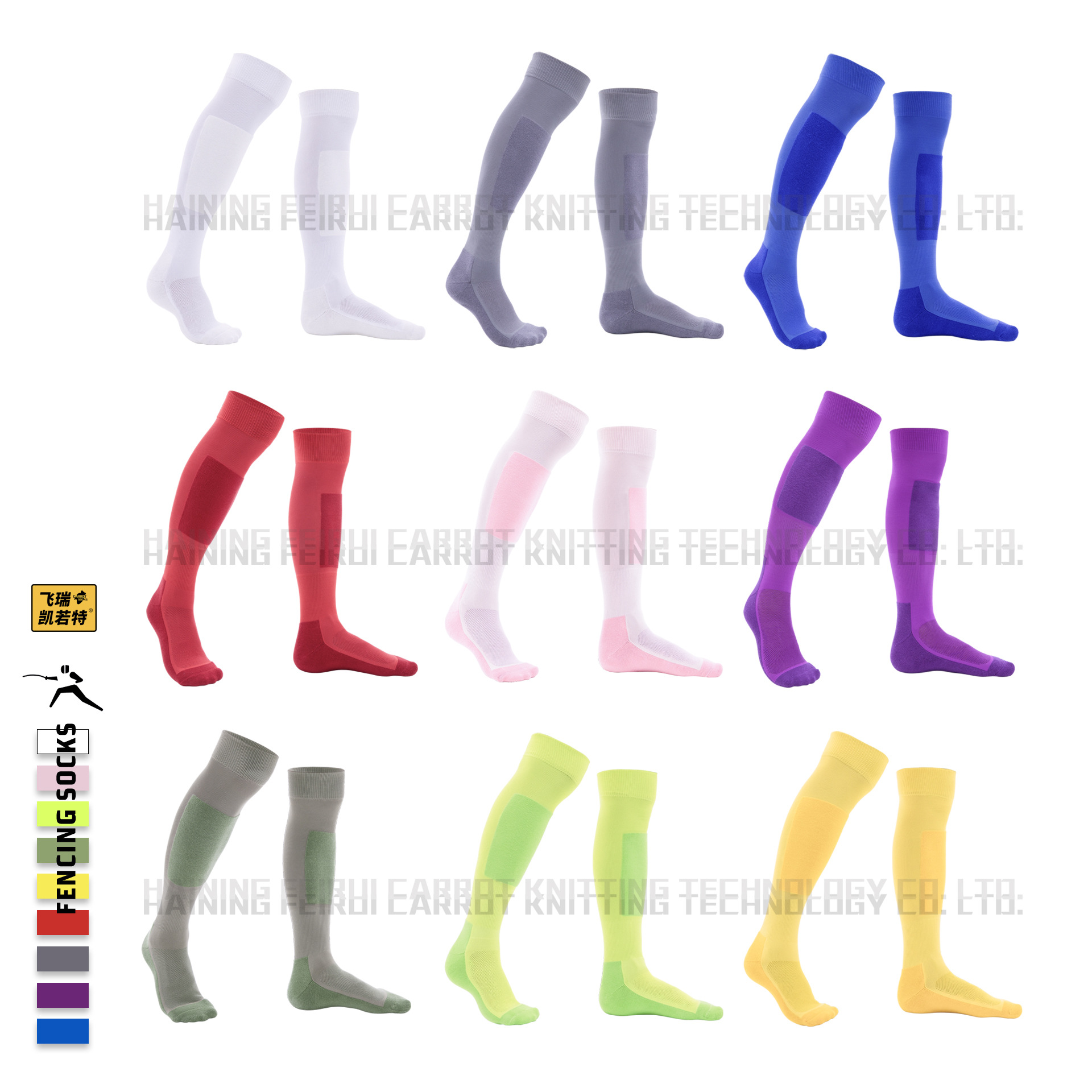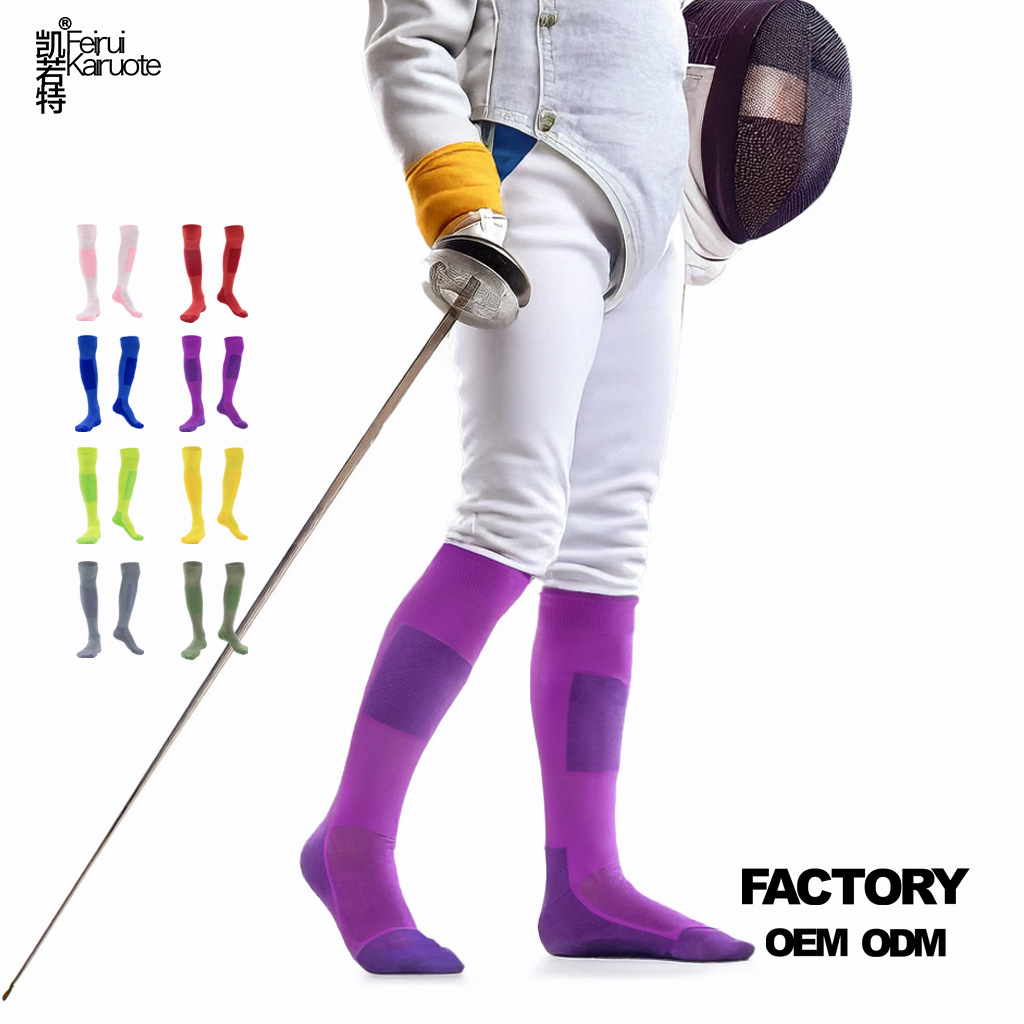 어린이 펜싱 양말 무릎 위 길이의 두꺼운 테리 소재 미끄럼 방지 내마모성 겨울 보온 스포츠 훈련 양말 컬러풀한 긴 양말