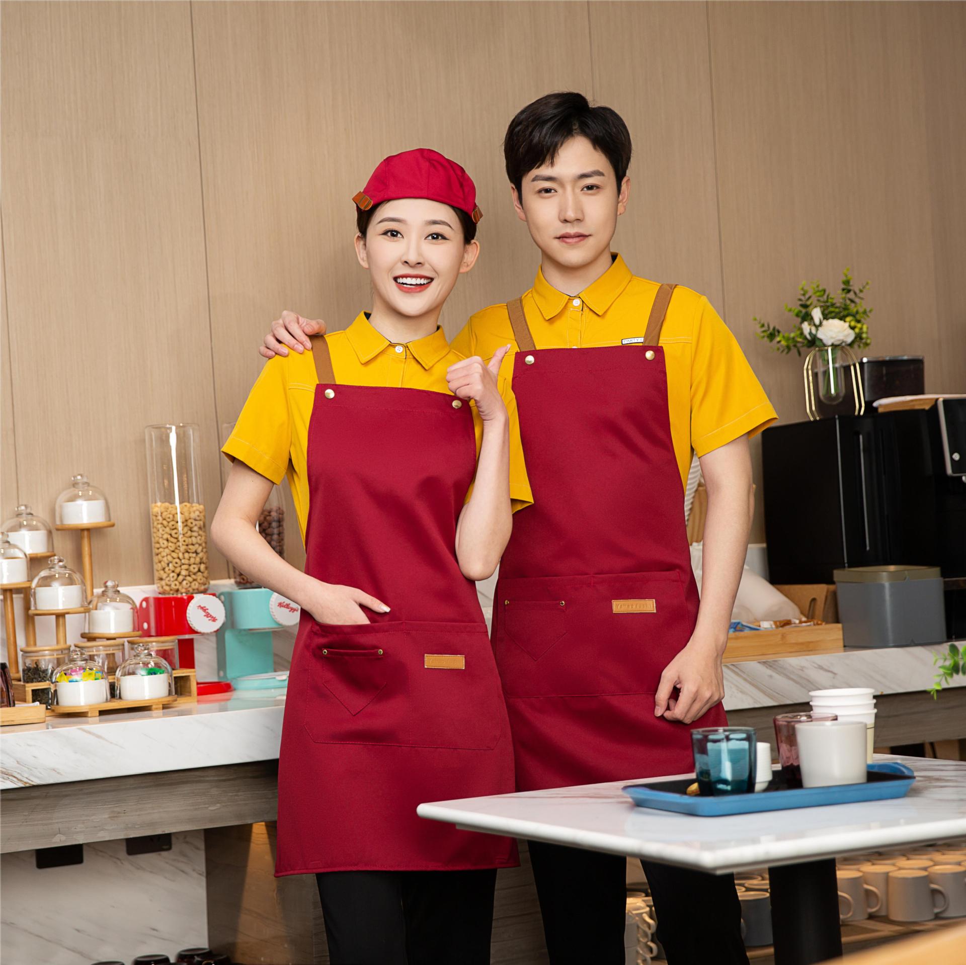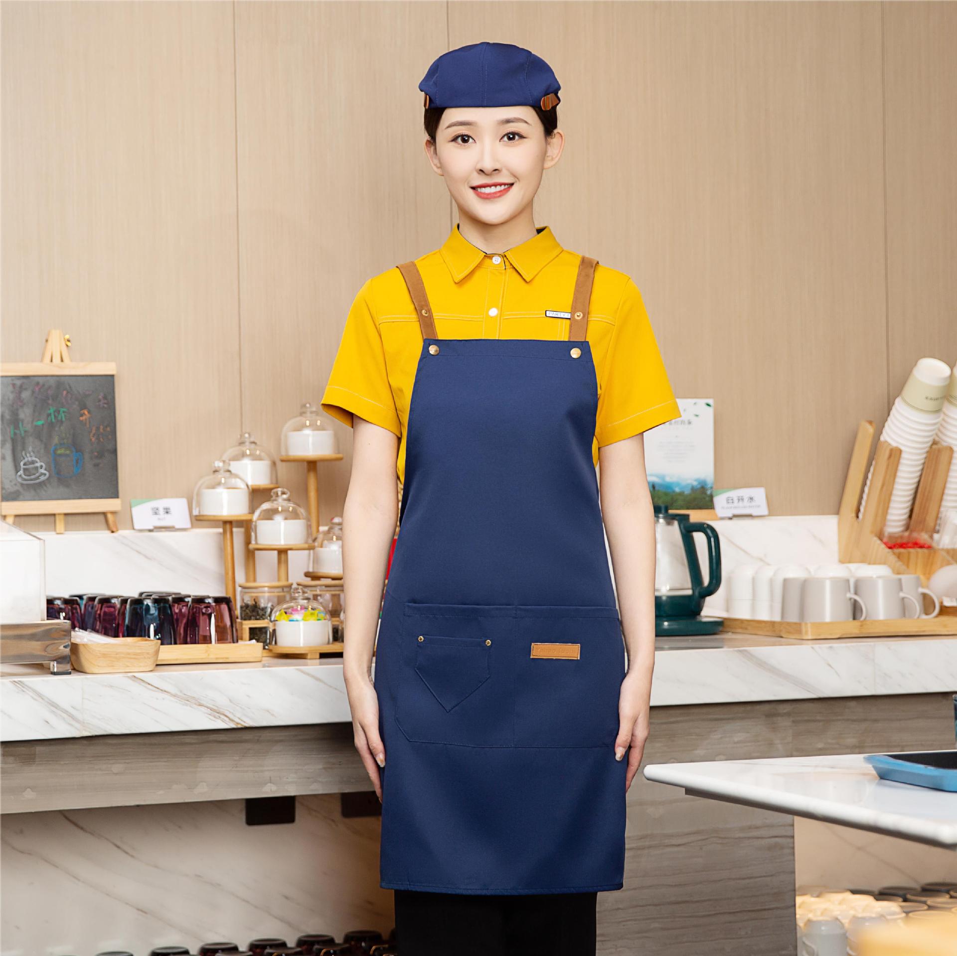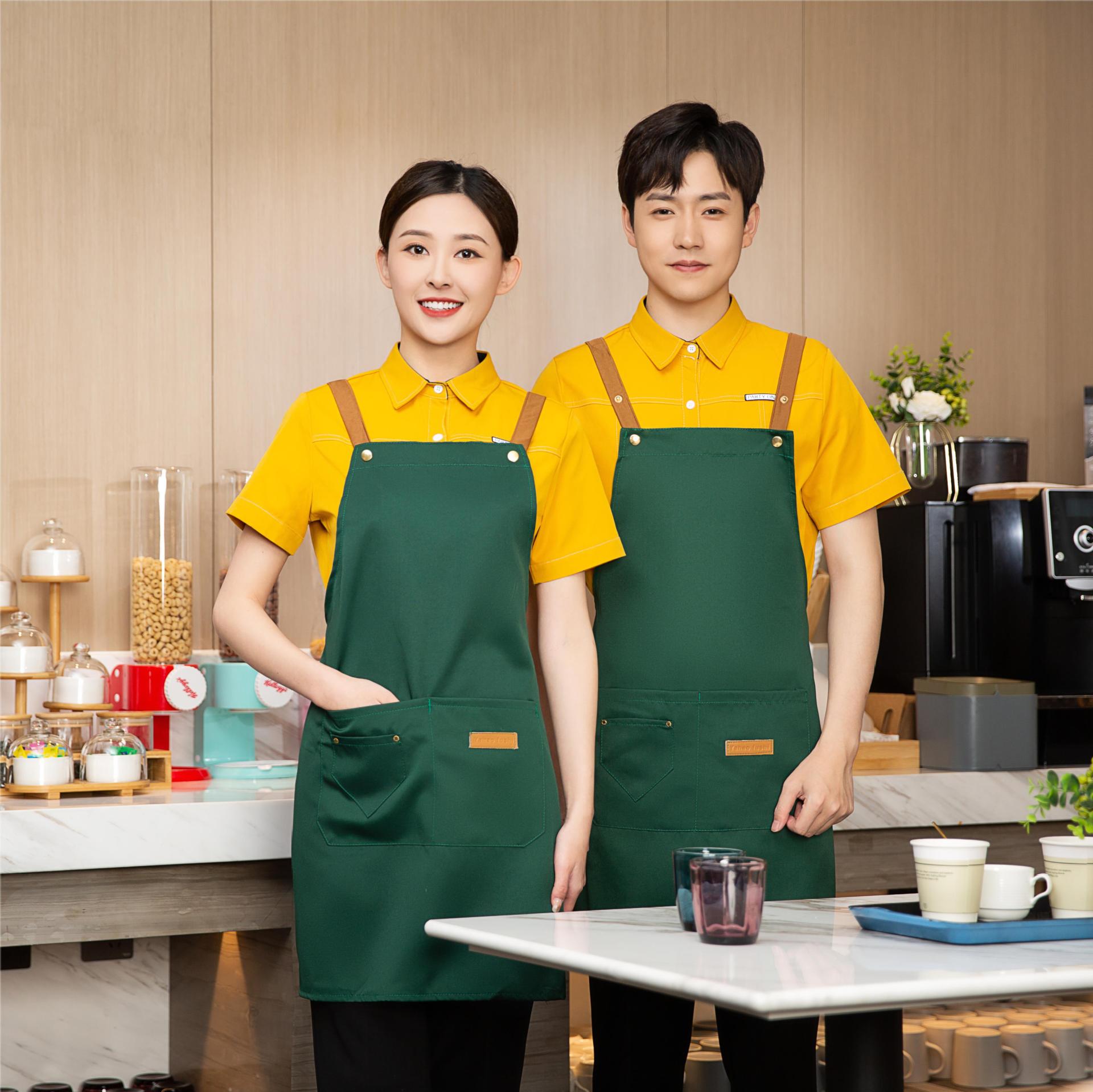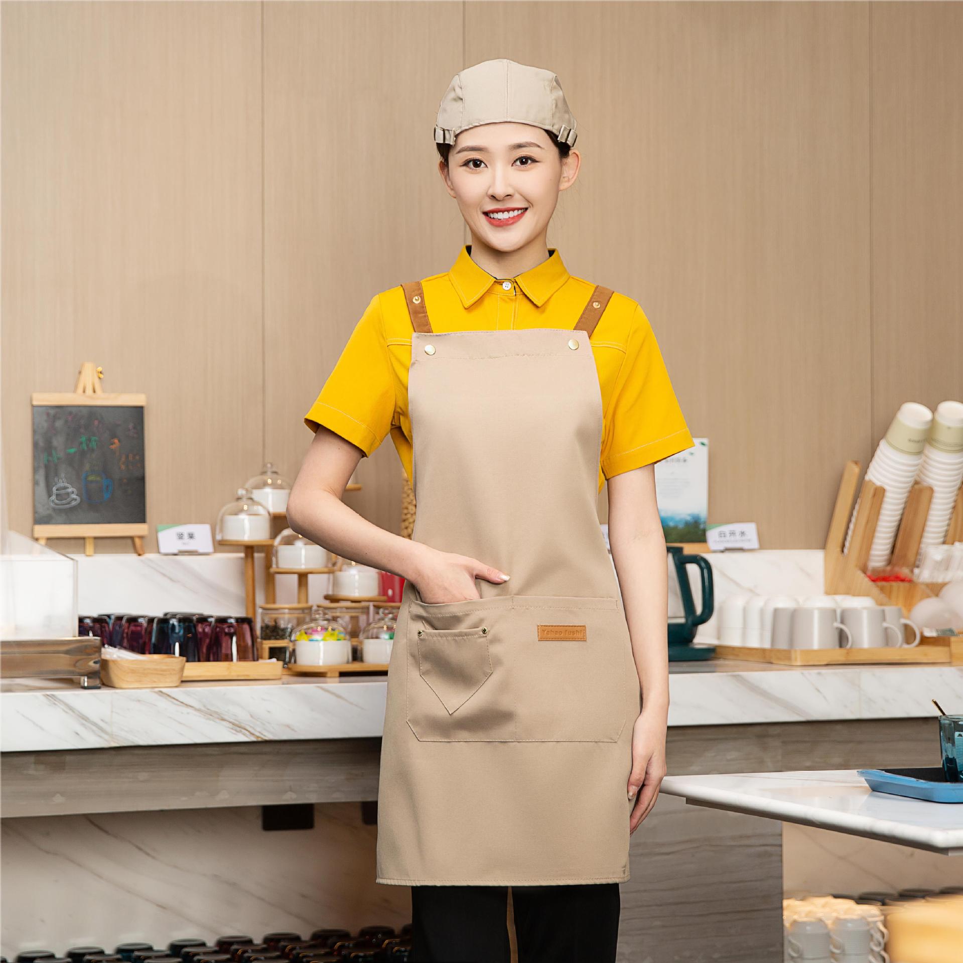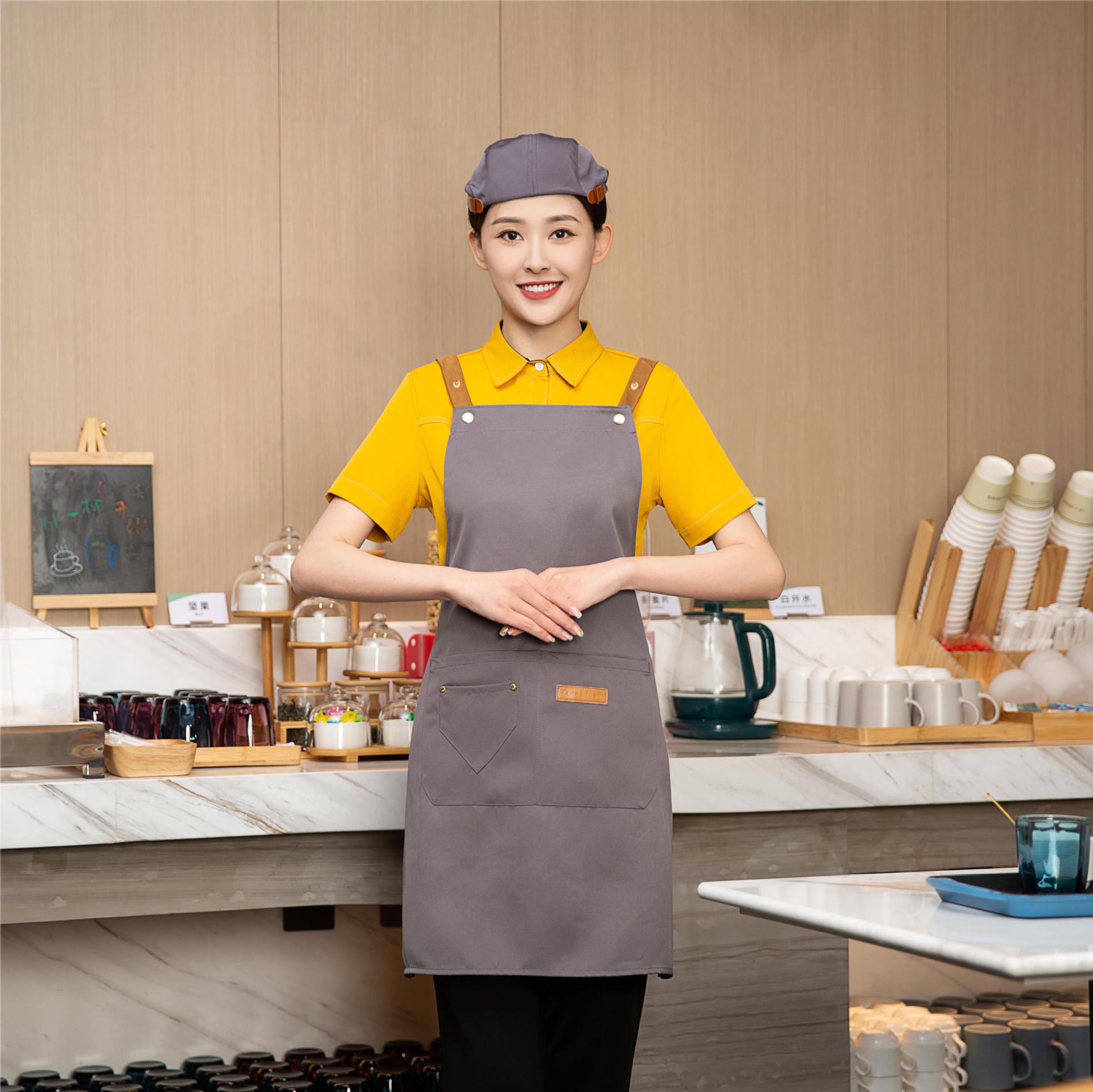 도매 새로운 패션 주방 방수 및 방수 앞치마 작업 바지 우유 차 가게 취사 커피 작업 바지 인쇄 가능 로고스토어 가기