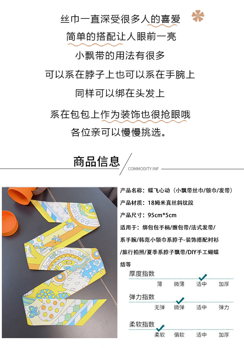 새로운 실크 스카프 나비 하트 실크 조커 작은 리본 다기능 작은 실크 스카프 중국 스타일 헤어 벨트 작은 장식