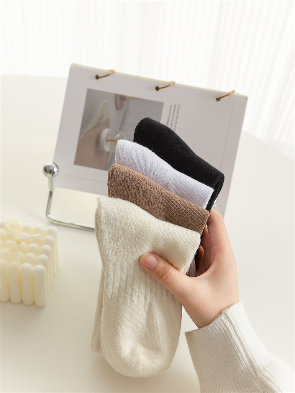 가을, 겨울 단색 두꺼운 따뜻한 테리 양말 수건 바닥 외부 긴 양말 남성과 여성 중반 송아지 양말 도매스토어 가기