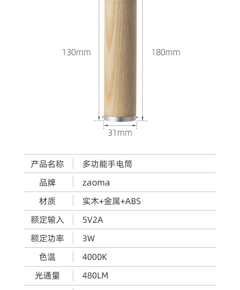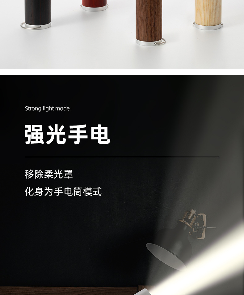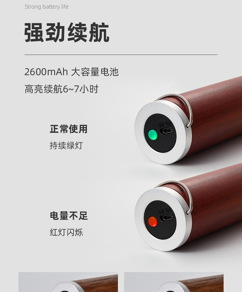 솔리드 우드 다기능 손전등 충전식 창조적 인 선물 야간 조명 캠프 라이트 핸드 헬드 휴대용 비상 LED 손전등