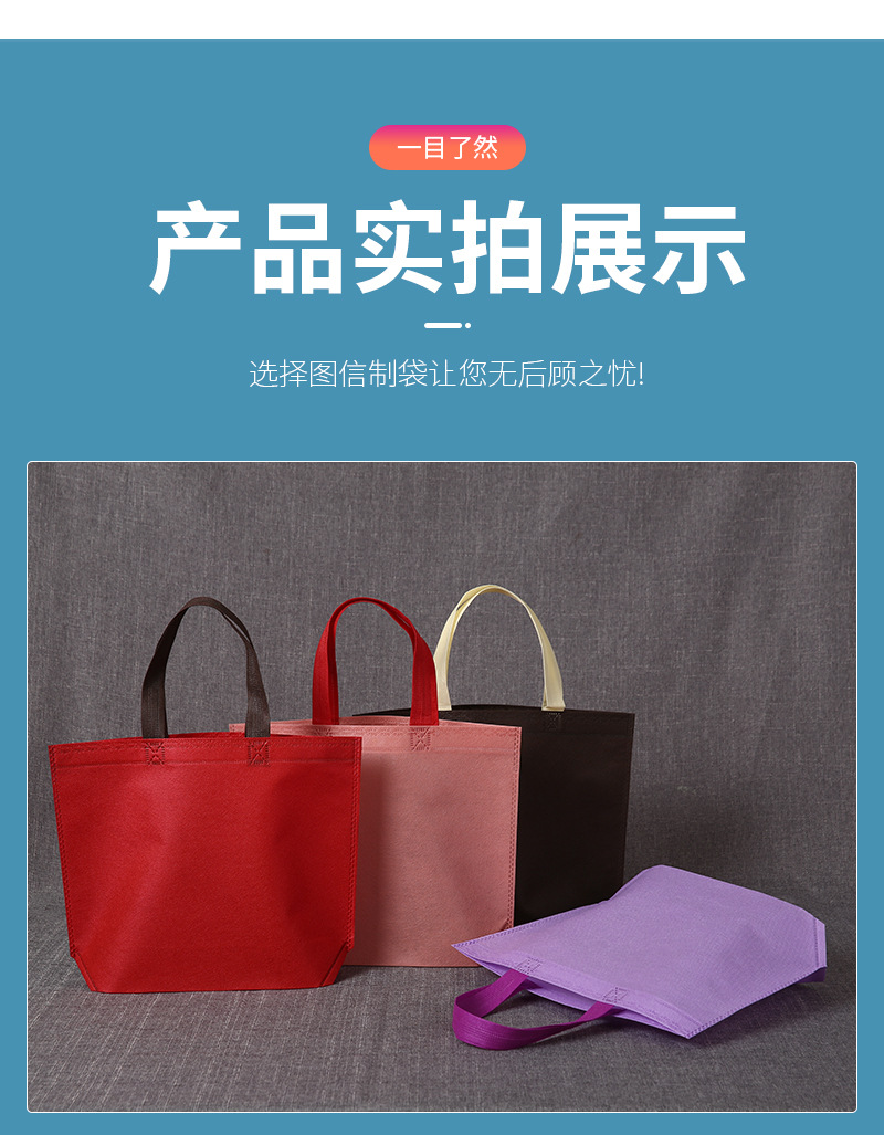 색상 부직포 경사 토트 백 광고 쇼핑 의류 휴대용 포장 가방 휴일 선물 토트 백 도매스토어 가기