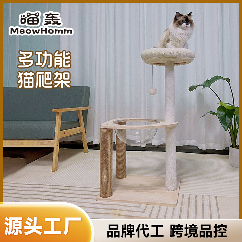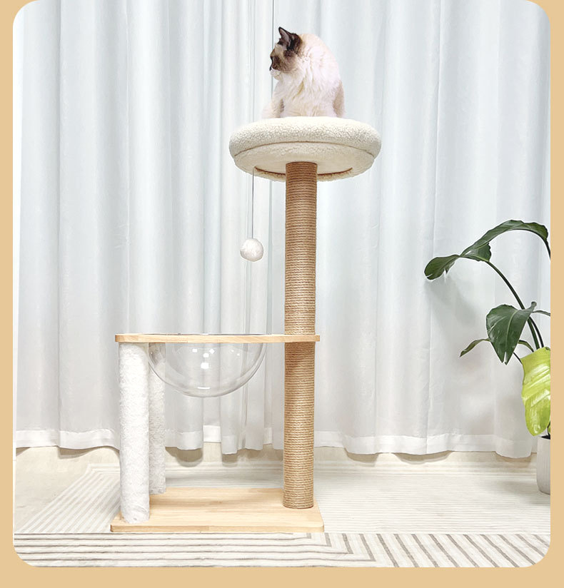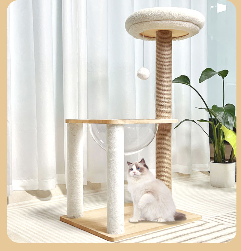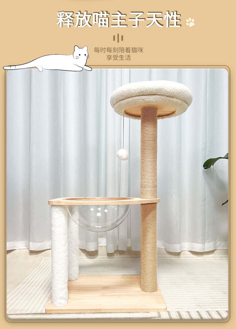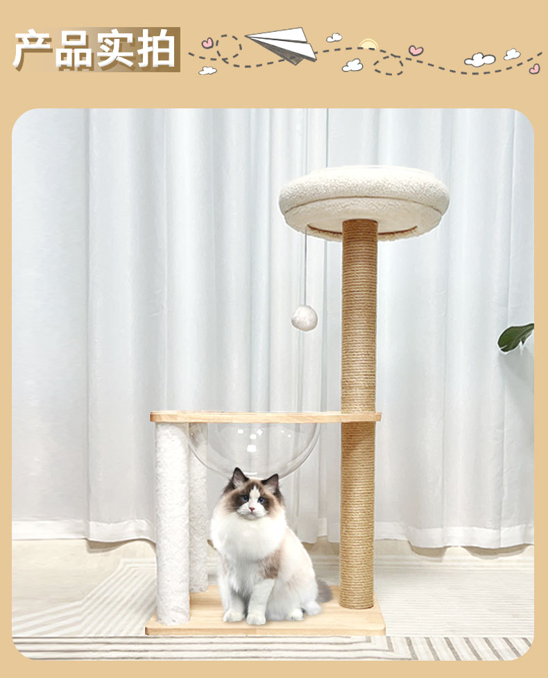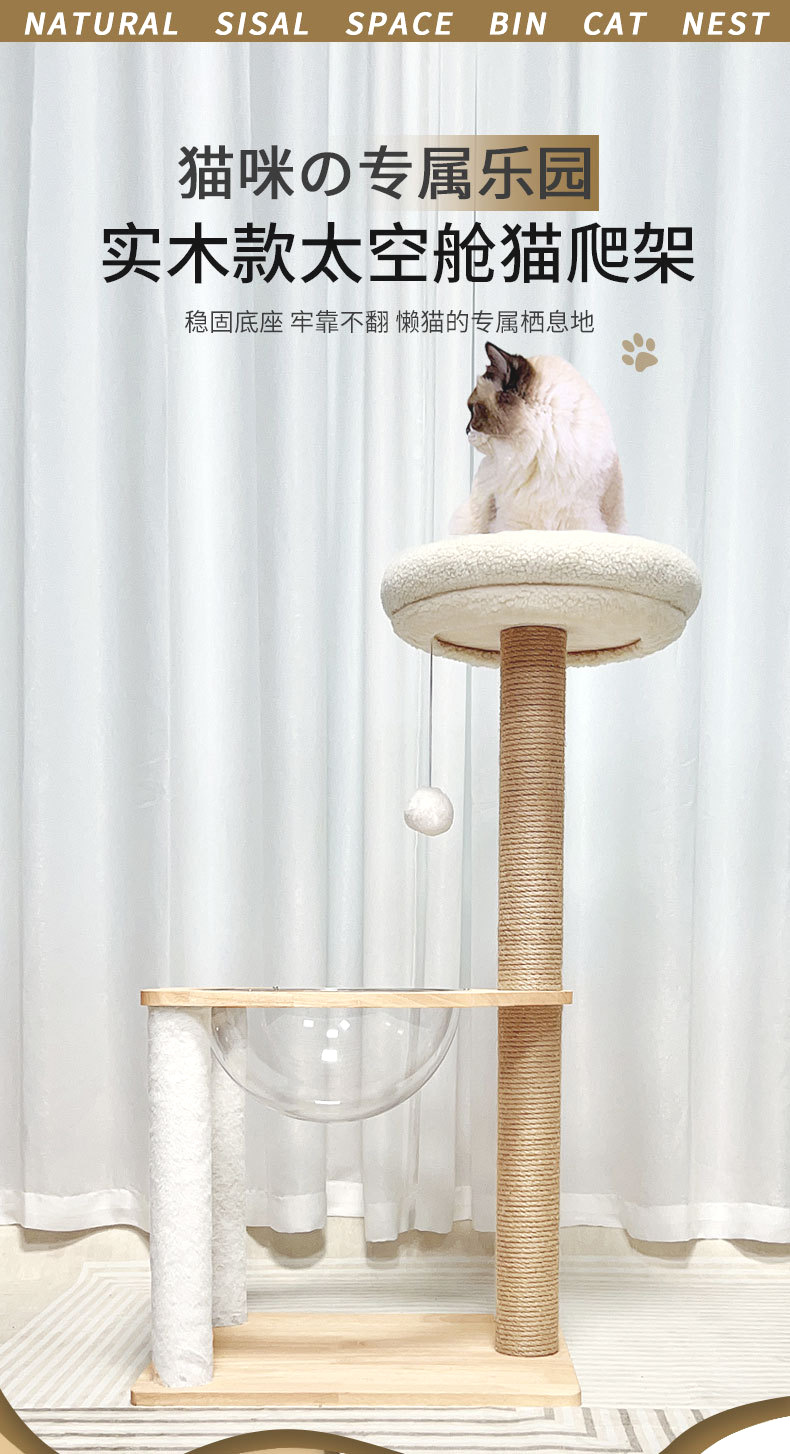 여름용 원목 고양이 클라이밍 프레임, 우주선 모양 고양이 집, 고양이 스탠드 일체형, 고양이 스크래치 기둥, 고양이 스크래치 보드, 넓고 안정적인 구조