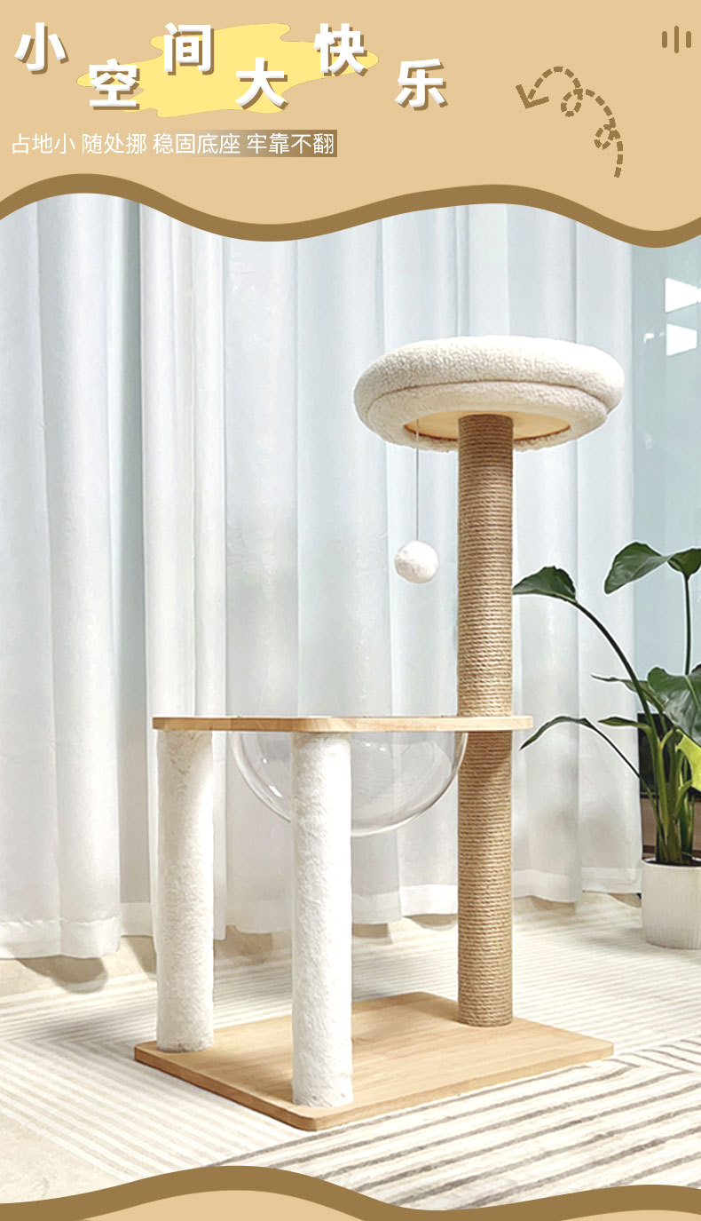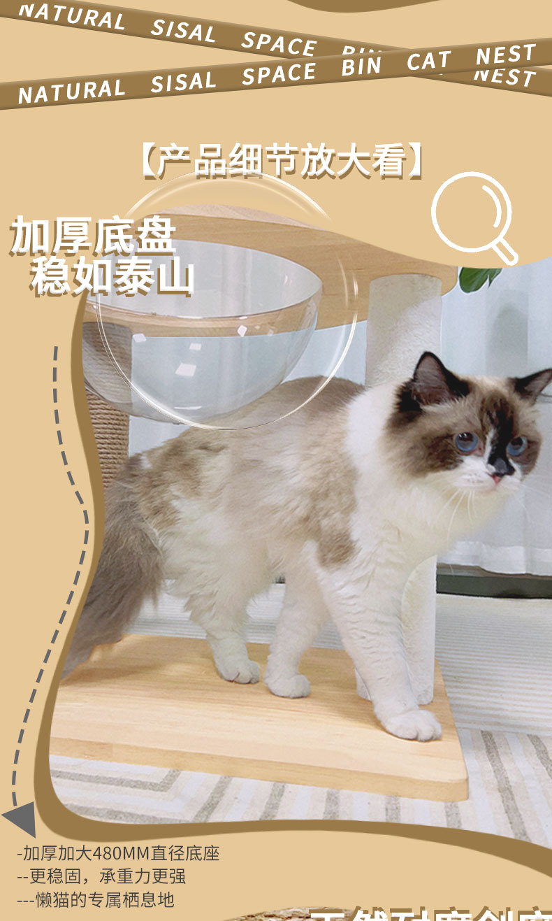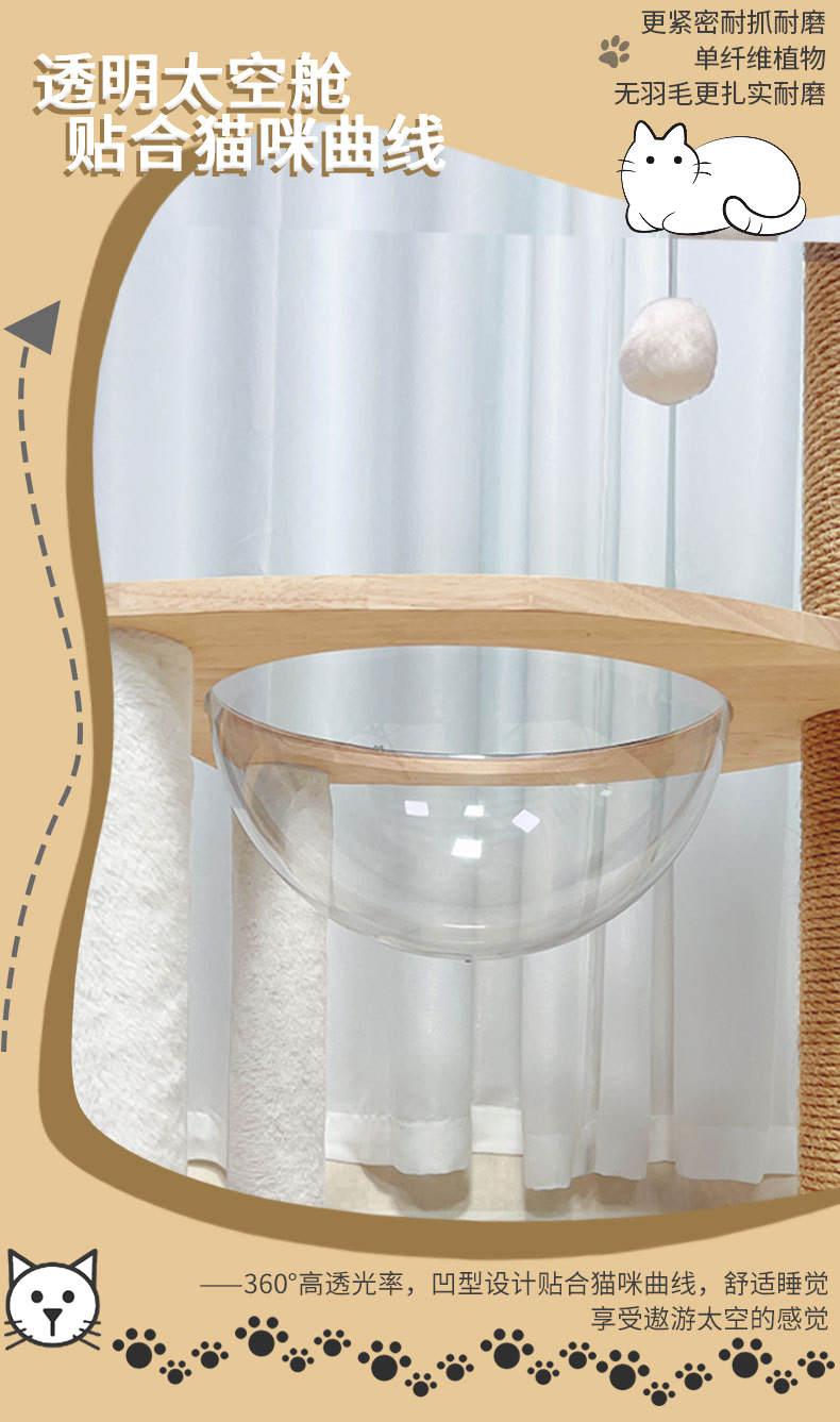 여름용 원목 고양이 클라이밍 프레임, 우주선 모양 고양이 집, 고양이 스탠드 일체형, 고양이 스크래치 기둥, 고양이 스크래치 보드, 넓고 안정적인 구조스토어 가기