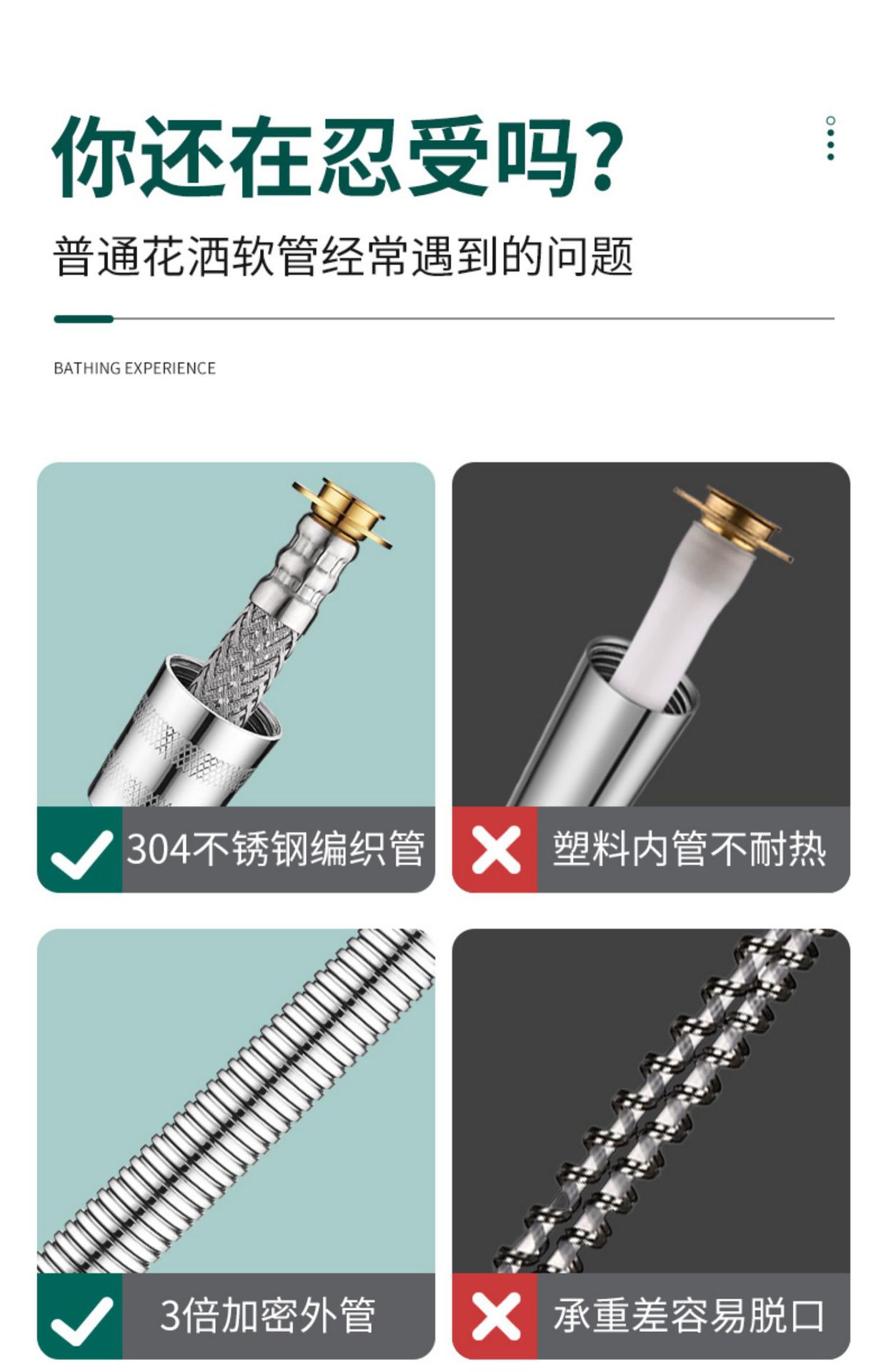 맞춤형 샤워 호스 샤워 온수기 욕실 노즐 연결 파이프 레인 스테인레스 스틸 수도관 범용 호스스토어 가기