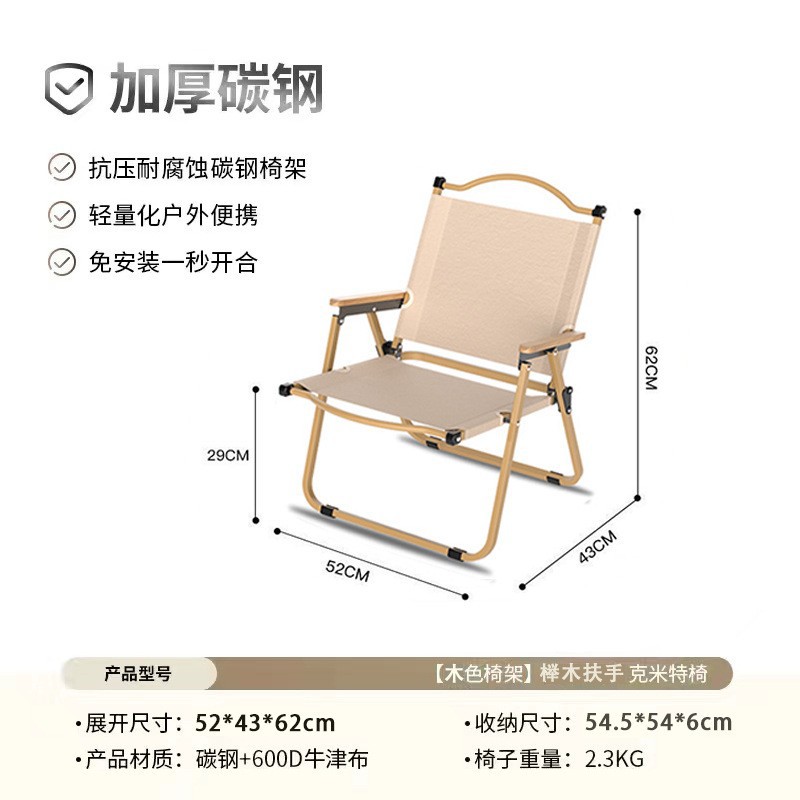 • [나뭇결 의자 프레임-탄소강] 카키 천 중형 (높이 62cm)